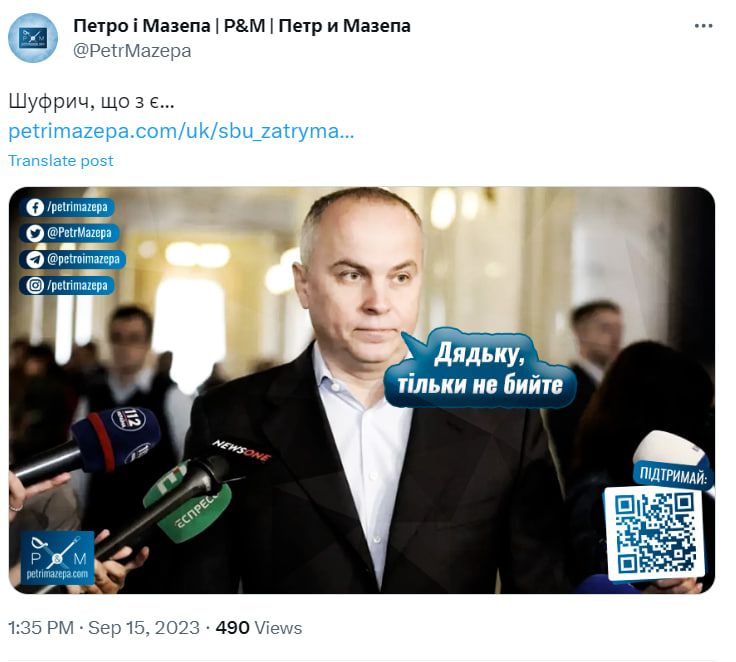 - Варто зауважити, що вранці 15 вересня до Шуфрича та до його близького оточення прийшли з обшуками. В СБУ заявили, що 15 вересня відбувається 45 обшуків.