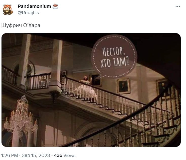 Ще один мем на ту ж тему. Українців дуже розсмішила наявність нерозпакованих фонтану та люстри, які займали значну частину інтер'єру.