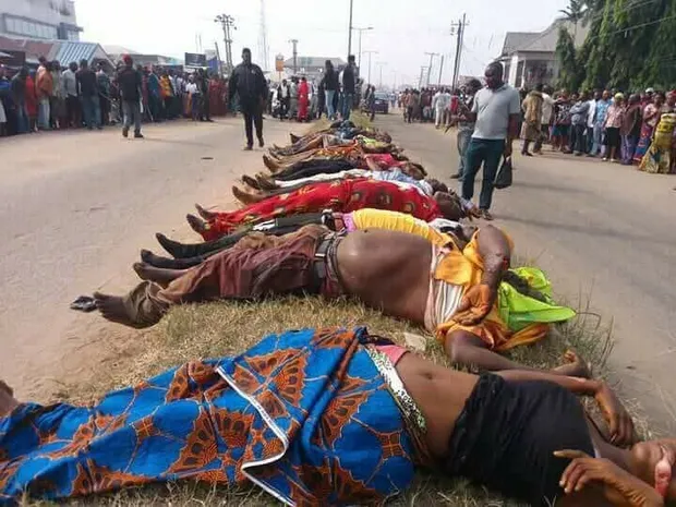 Трагедія сталася вночі 1 січня неподалік населеного пункту Омоко, що на півдні країни у штаті Ріверс. Група чоловіків відкрила вогонь по людях, які поверталися в новорічну ніч із церкви.