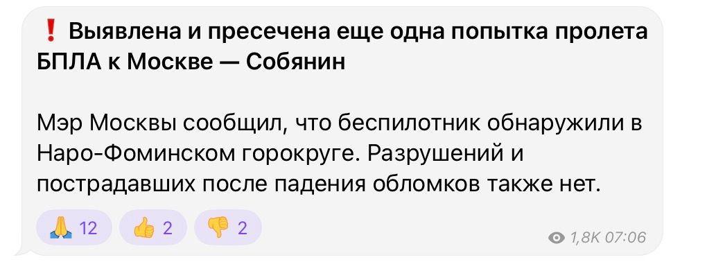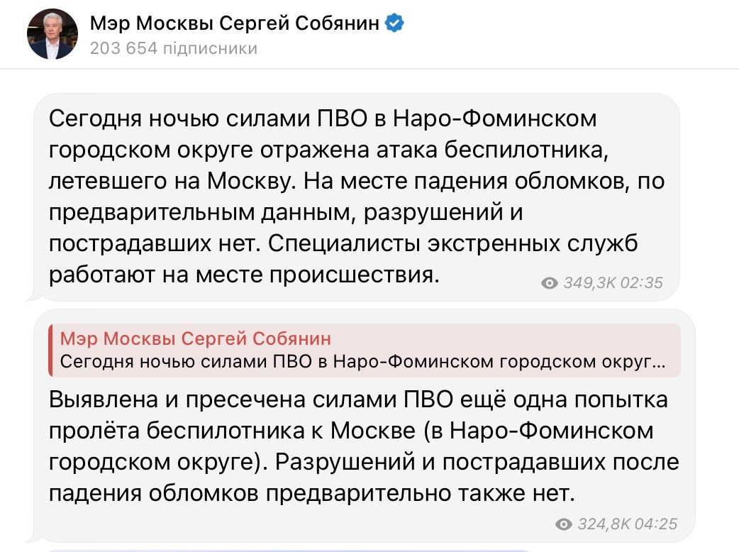 Хай там б що не говорили загарбники, але дещо очевидно стовідсотково – чиновники Росії вночі спали дуже погано. Зокрема, телеграм-канал мера Москви та губернатора Калузької області невтомно писали про БпЛА.