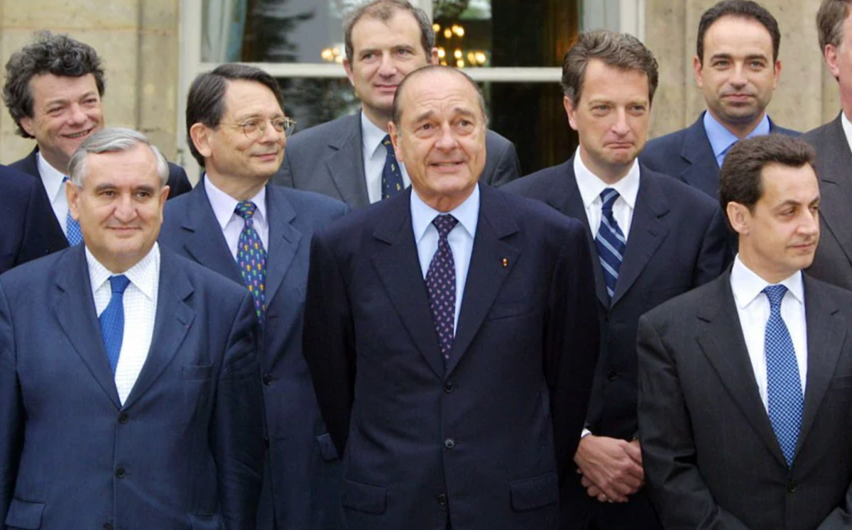 Президент Франції Жак Ширак і Саркозі (крайній справа) стоять разом із міністрами в Єлисейському палаці / фото Pascal Le Segretain / Getty Images