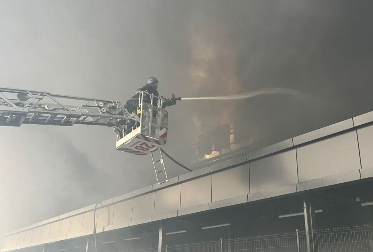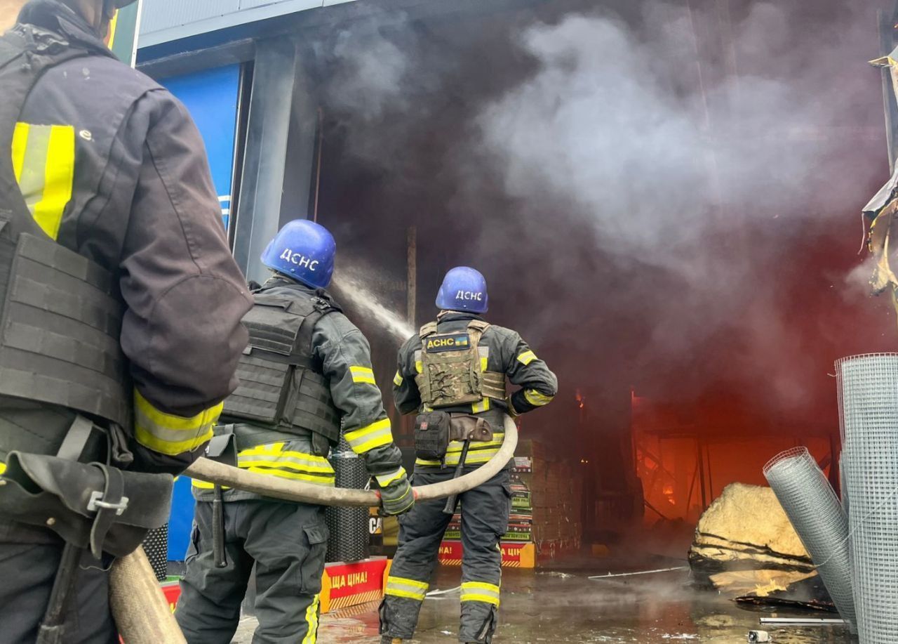 Рятувальники гасять вогонь в ТЦ у Нікополі / Фото ОВА