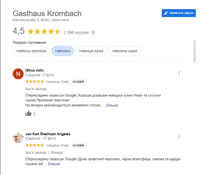 Відео викликало бурхливе засудження. Тисячі українців за ніч обвалили рейтинги Gasthaus Krombach у Google.