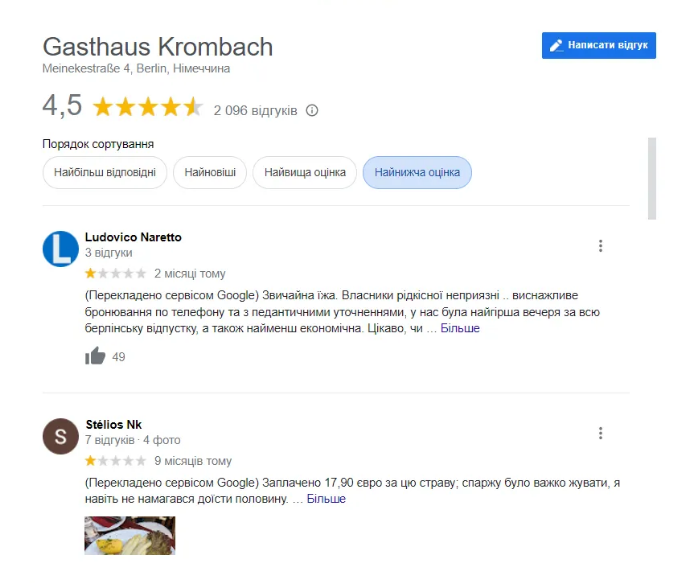 Відгуки ресторану раптово "оновились" / Скриншот з Google: