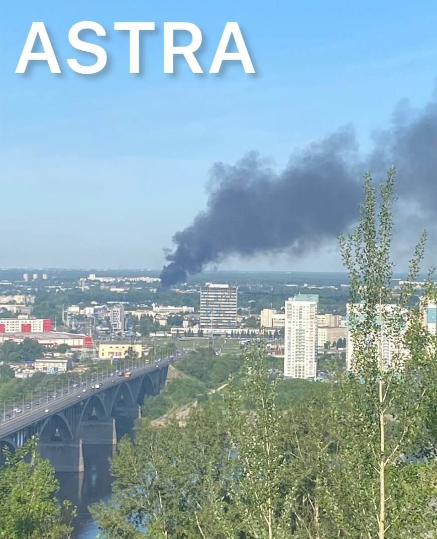 Російське видання ASTRA написало про пожежу вранці 5 червня. На опублікованих кадрах помітно чорний дим, пише 24 Канал.