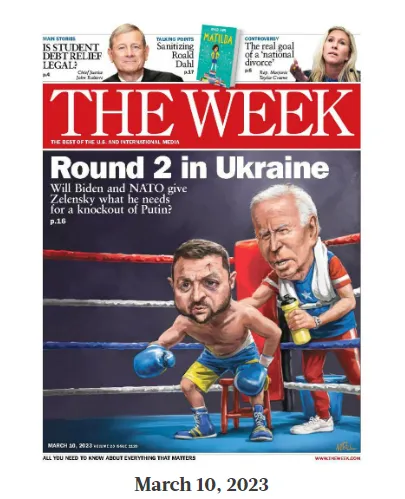 Підпис тижневика назву: "Другий раунд в Україні. Чи дадуть Байден і НАТО Зеленському те, що йому потрібне для нокауту Путіна?".