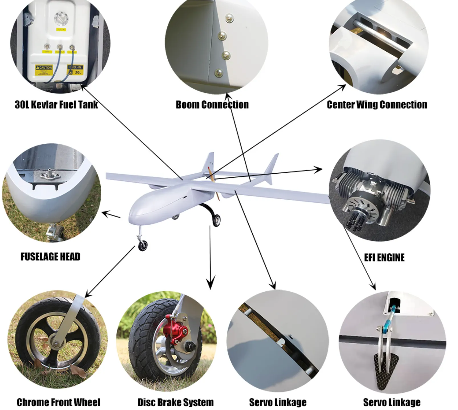 Начинка БпЛА Mugin-6 Pro з тривалістю польоту до 8 годин і вартістю близько 40 тисяч доларів, який потенційно могли використати росіяни / Інфографіка зі сайту компанії