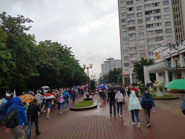 Частина протестувальників в якийсь момент рушила в бік Палацу незалежності, де розташована резиденція президента Білорусі. Її оточили силовики й не пропускали мітингувальників. Втім, люди підходили ледь не впритул до них.