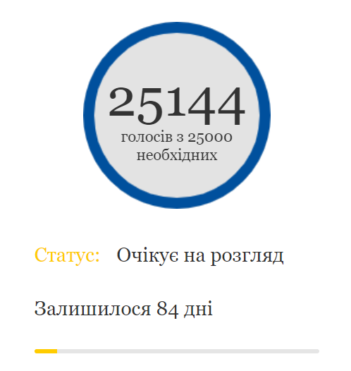 Станом на 23:30 1 жовтня петицію підтримали 25 114 людей. Наразі статус звернення громадян: "очікує на розгляд".