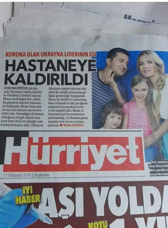 Одна з найпопулярніших турецьких газет Hürriyet у своїй друкованій версії припустилася неприпустимої, але водночас кумедної помилки. В новині про госпіталізацію дружини президента України Володимира Зеленського Олени через коронавірус, журналісти використали фото співачки Віри Брежнєвої.