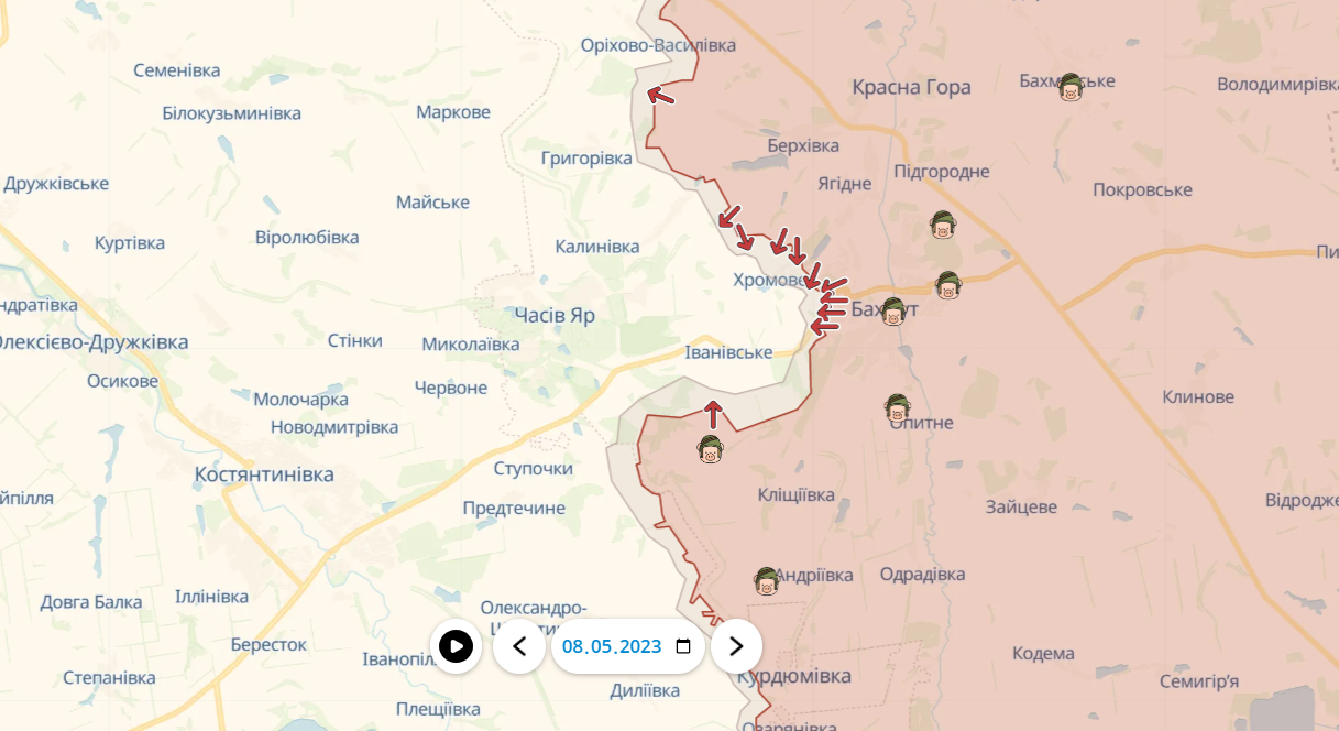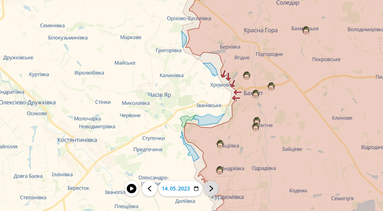 Як за тиждень змінилась ситуація під Бахмутом: скриншоти DeepStateMAP