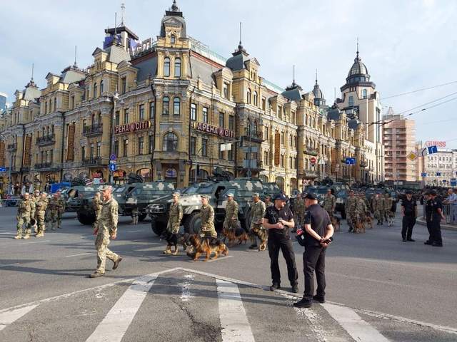 Близько 15:00 18 серпня у Києві почали перекривати дороги аби забезпечити проїзд колонам техніки. Саме на цей день запланували генеральну репетицію параду до Дня Незалежності. Майже всі центральні вулиці столиці оточили поліцейські, які забезпечували порядок.