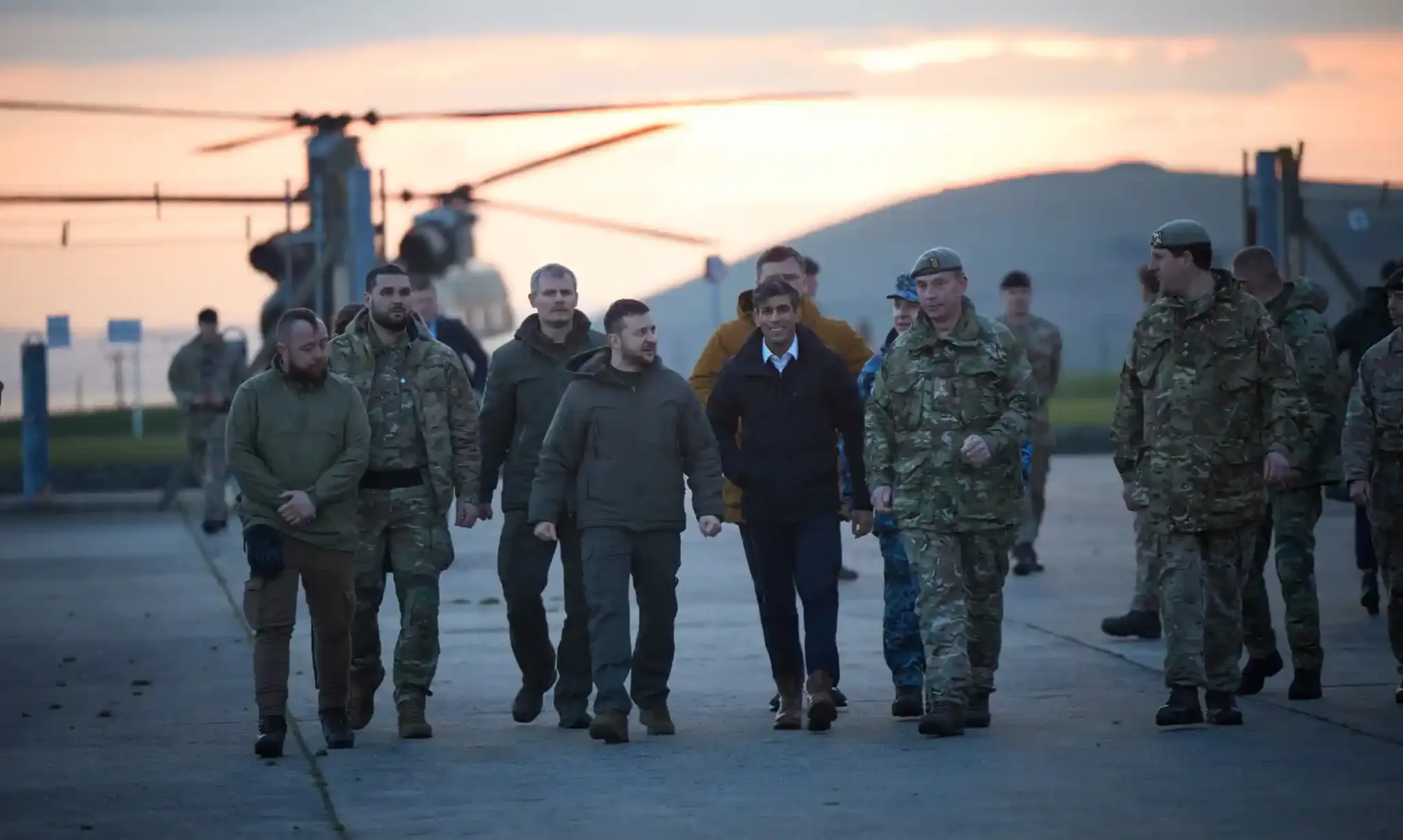 Володимир Зеленський і Ріші Сунак відвідали українських військових, які навчаються використовувати танки Challenger 2 в Дорсеті, в четвер, 9 лютого 2023 року / фото EyePress News/REX/Shutterstock