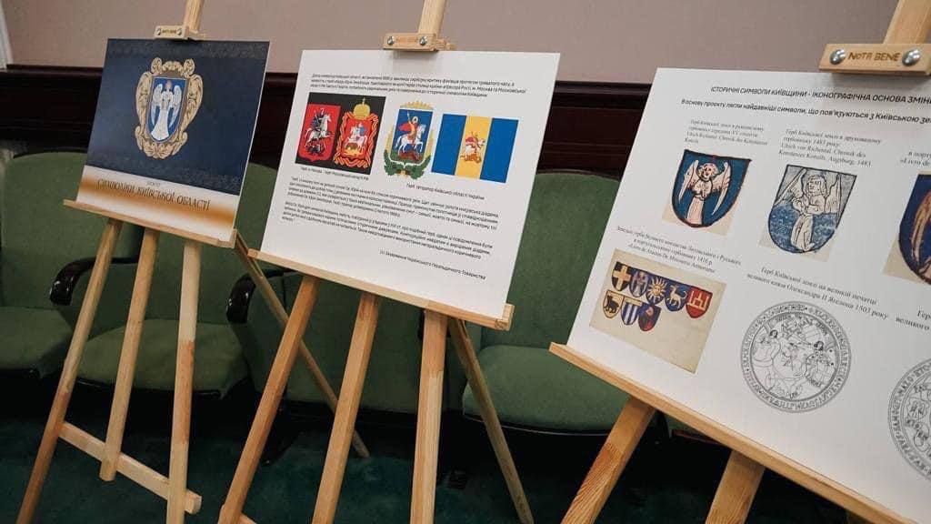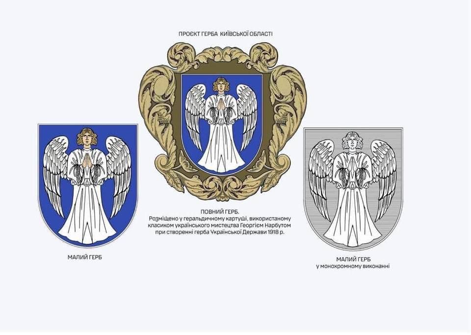 Як розповів очільник Київської обласної військової адміністрації Руслан Кравченко, 24 липня депутатам, керівникам громад і мерам міст презентували новий герб і прапор області. Фахівці запропонували, щоб в основі герба був зображений ангел.