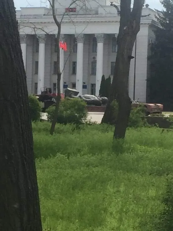 Окупанти встановлюють пам'ятник Леніну у Новій Каховці / Фото Олег Батутін
