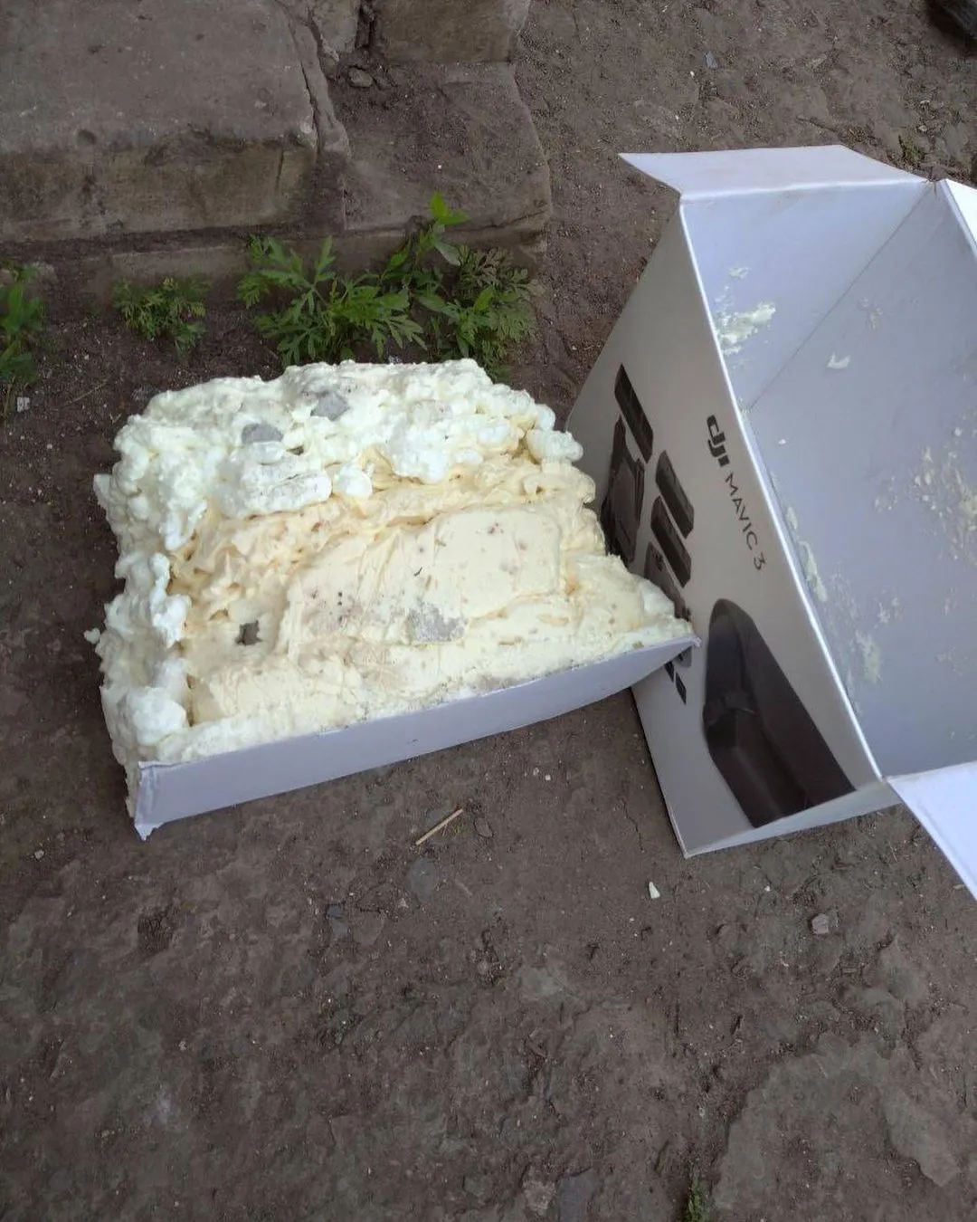 24 травня військовий 92 ОМБР, на чий запит волонтери відправляли дрон, забрав посилку. Однак коли її розпакували, були шоковані. Там побачили 2 цеглини та монтажну піну. Верх заводської плівки коробки дрону був зрізаний.