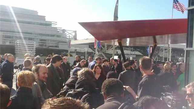 Біля центру мистецтв, де відбудеться презентація збираються люди.