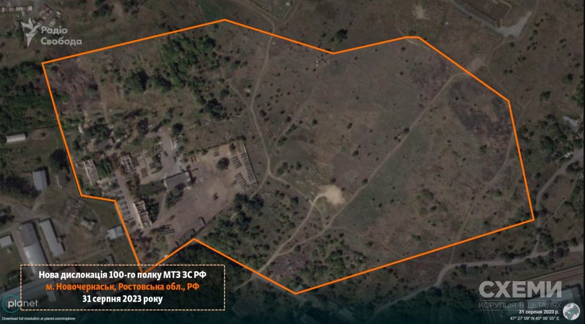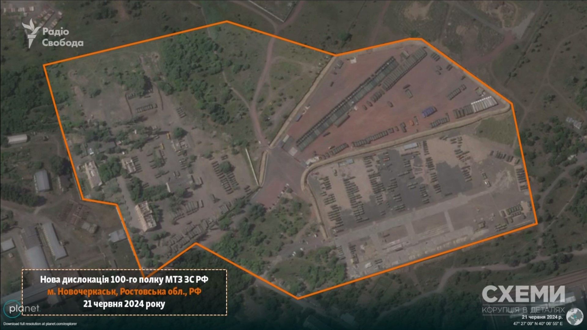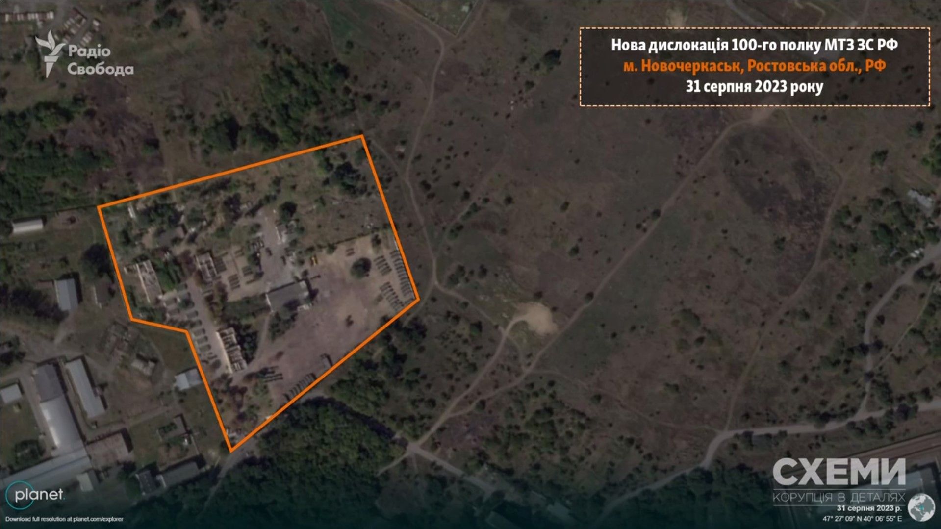 Журналісти "Схем" припускають, що база у Новочеркаську може належати до 100-го військового полку матеріально-технічного забезпечення збройних сил країни-агресорки.
