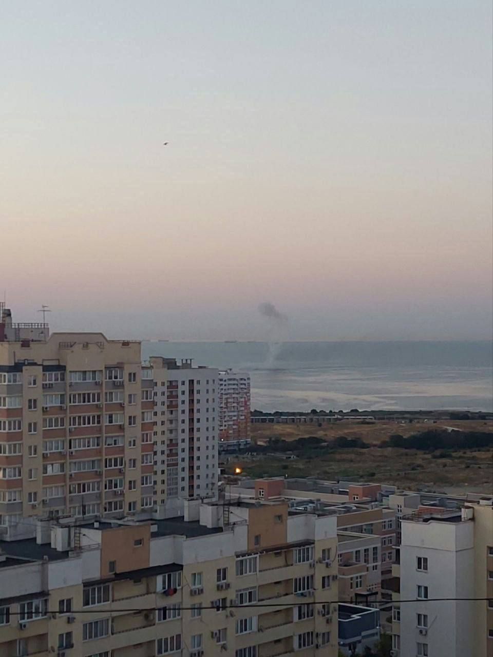 Ці вибухи чули впродовж 10 хвилин, а згодом очевидці зробили кілька фото, як щось "палало у воді". Очевидці повідомили, що місто нібито атакували "морські дрони".