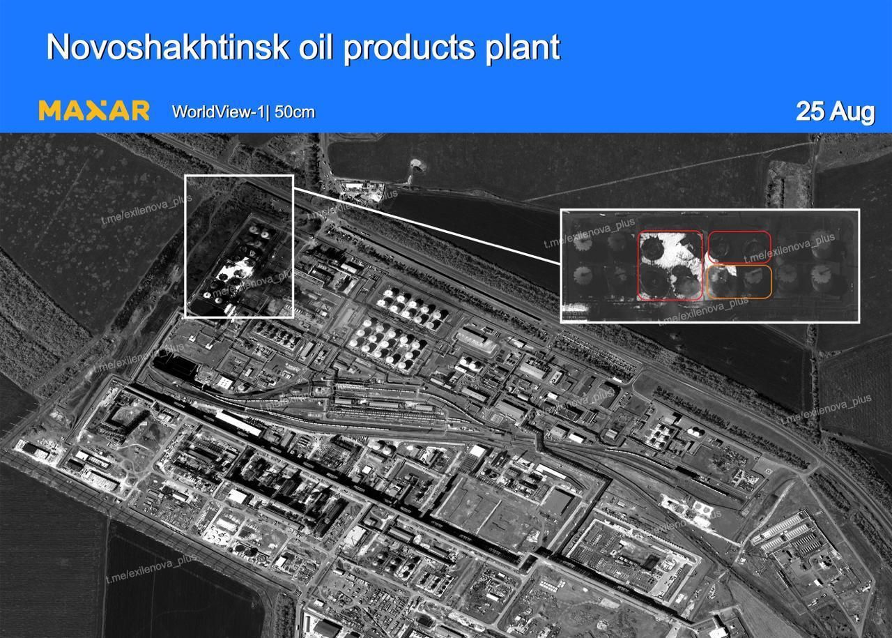 - ЗСУ вразили Новошахтинський НПЗ у ніч проти 21 серпня, що викликало масштабну пожежу, яку не могли погасити кілька днів.