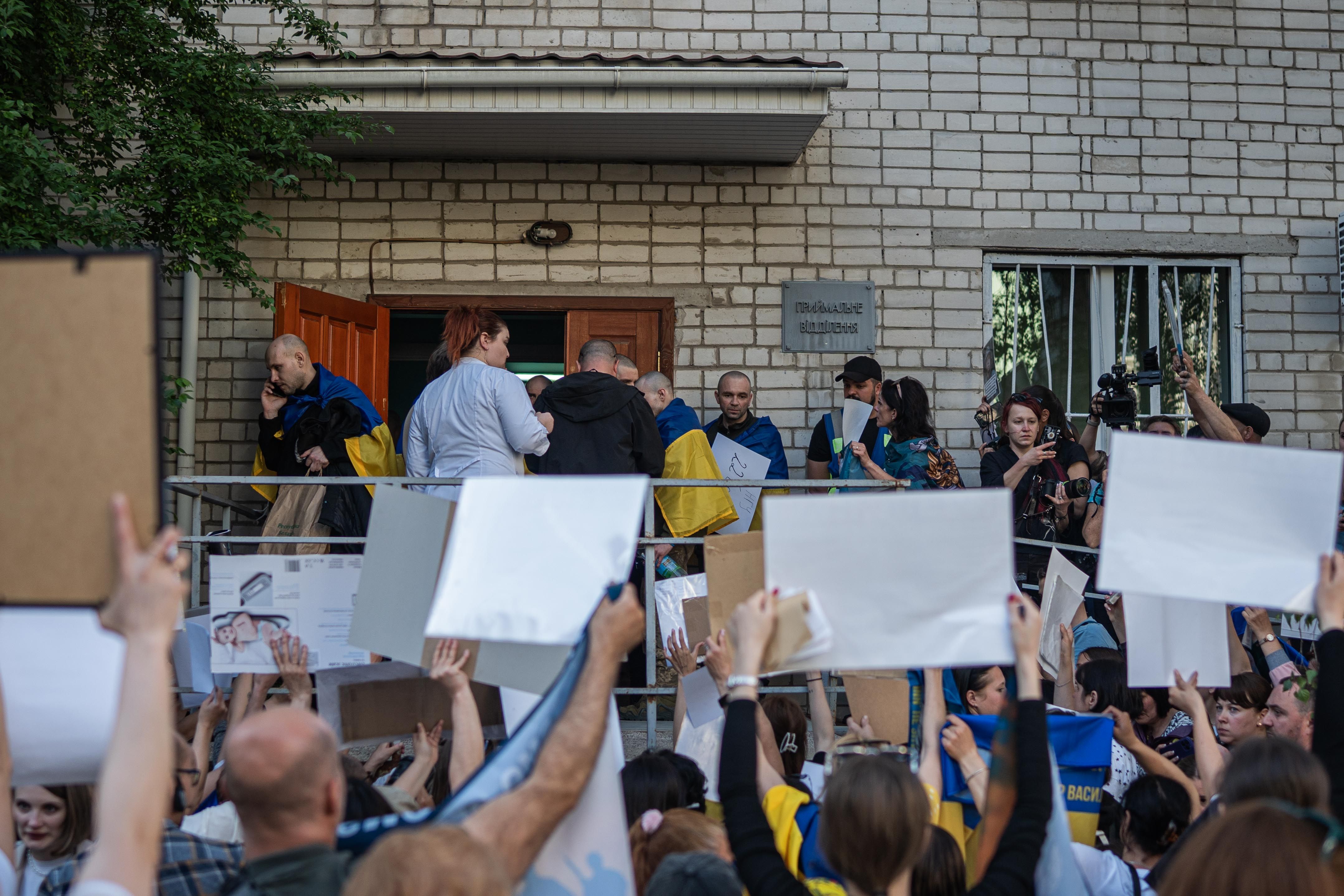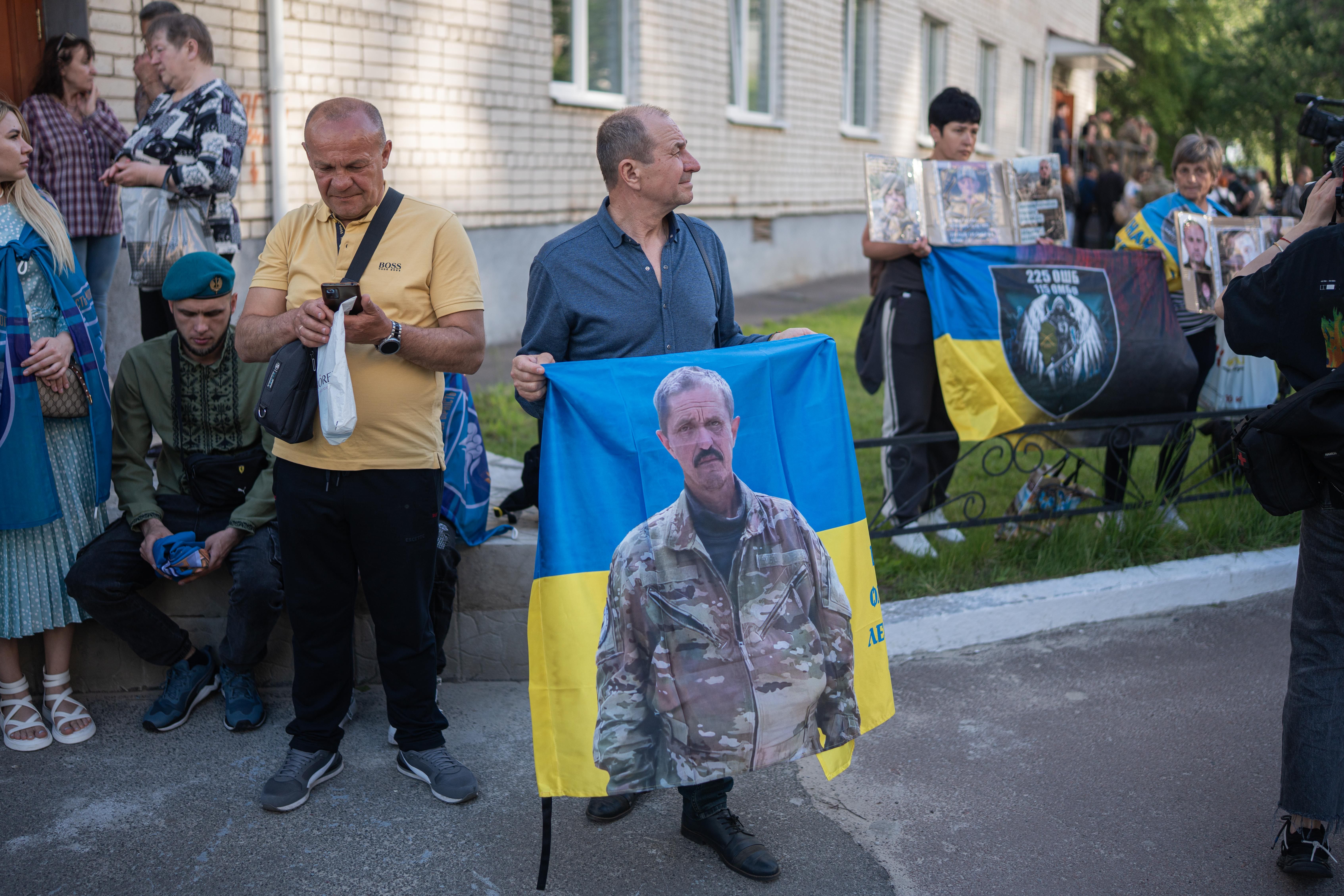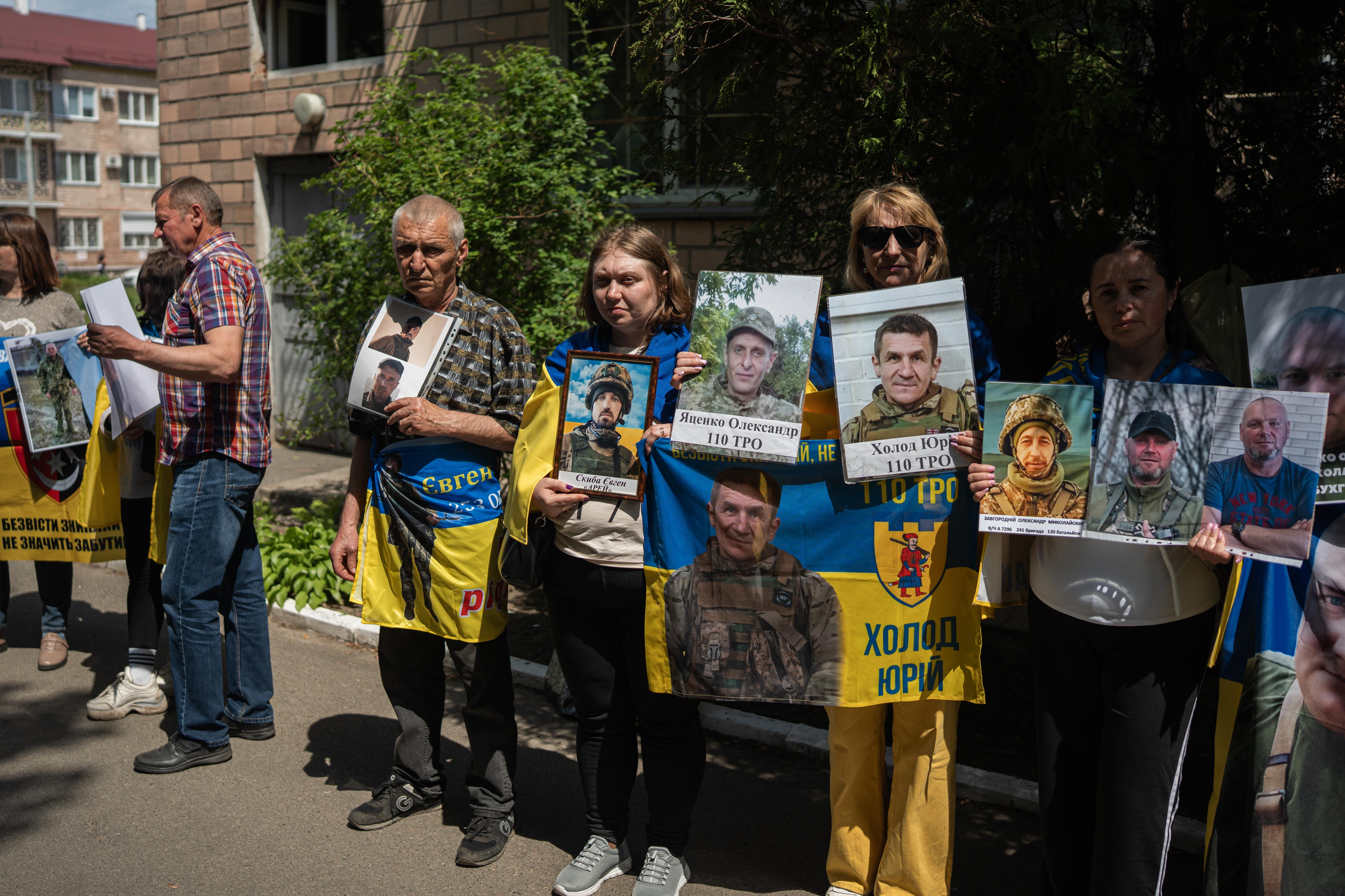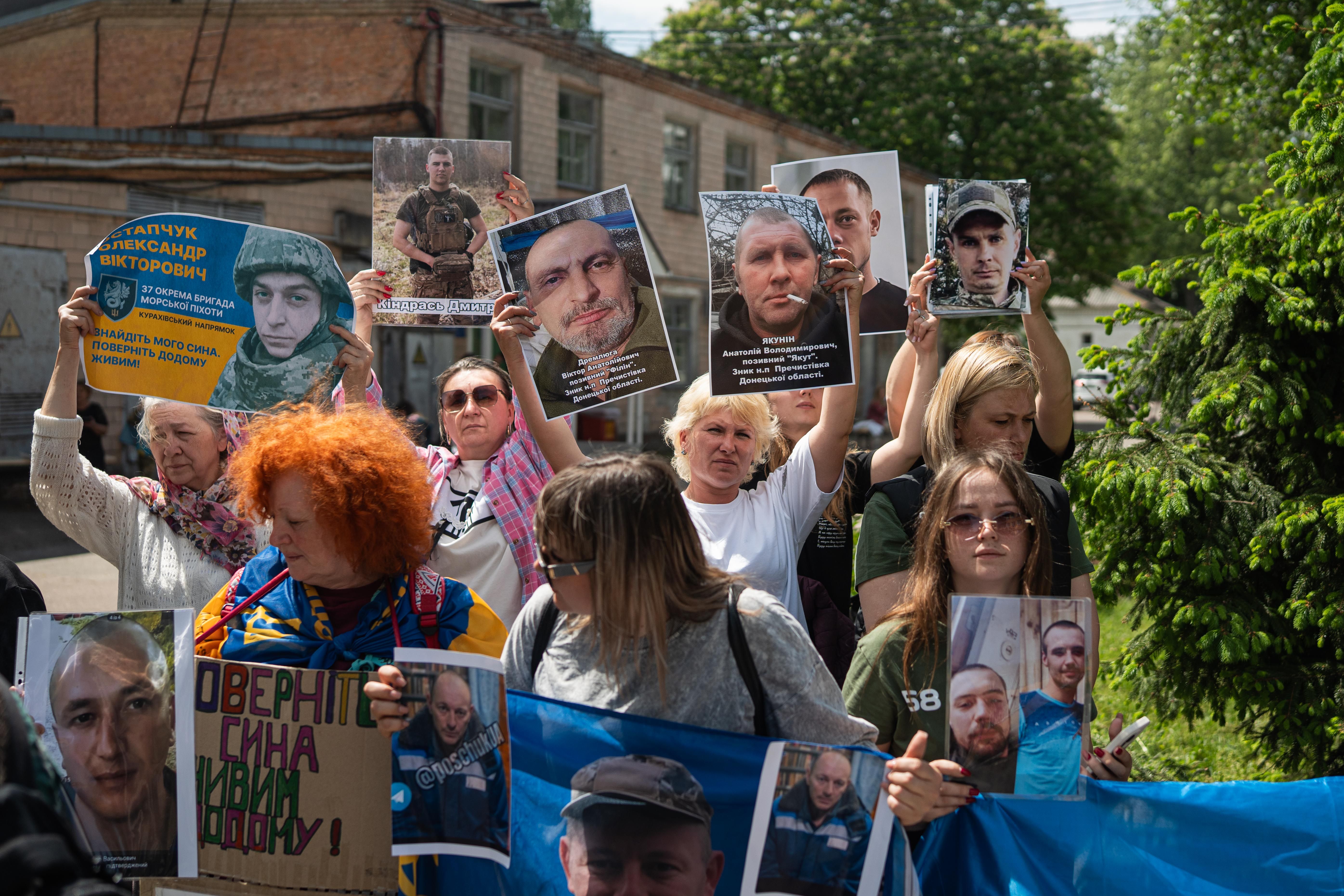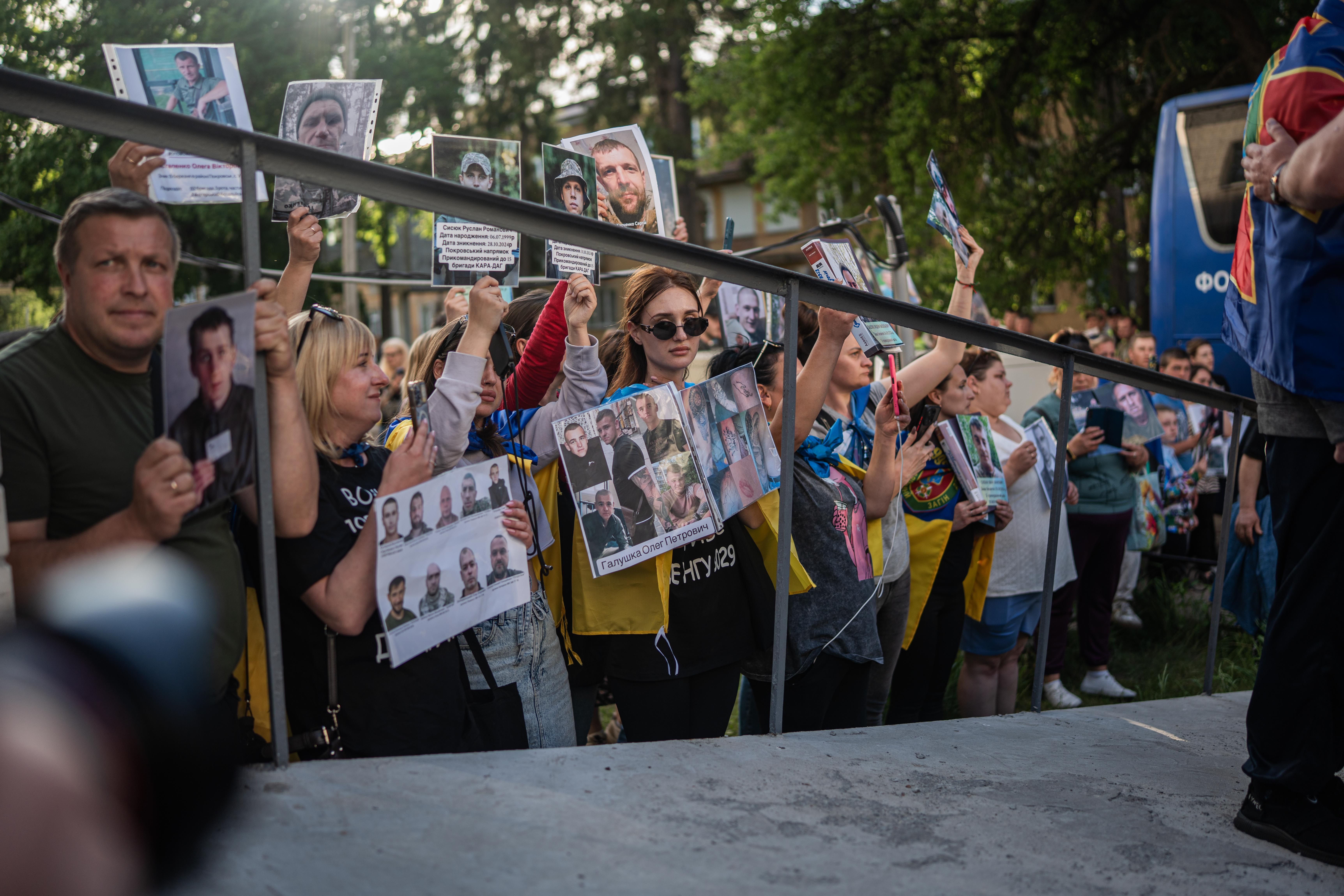 Рідні показують воїнам фото своїх близьких, намагаючись дізнатися про їхню долю / Фото Валентини Поліщук для 24 Каналу