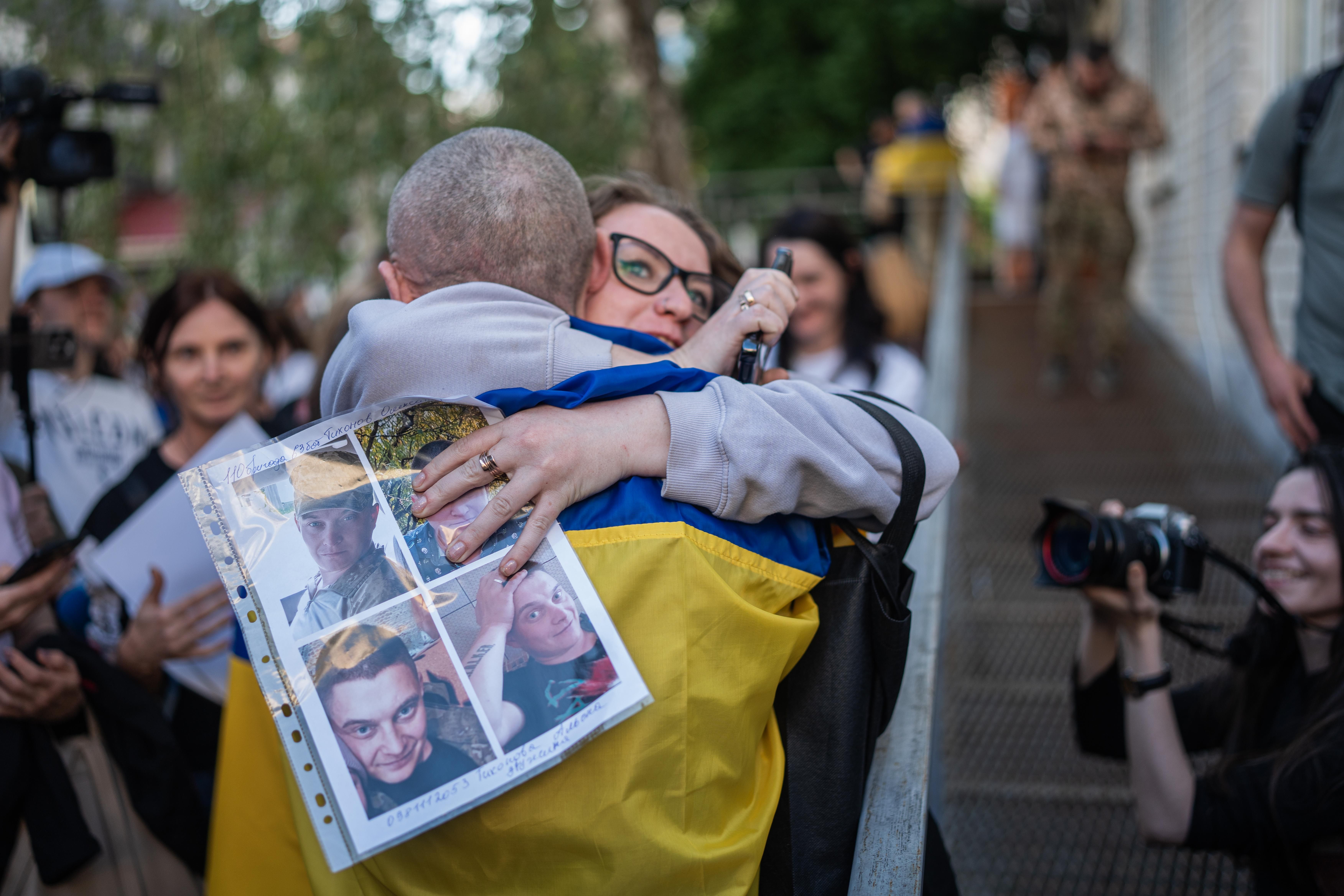 Серед тих, хто приїхав зустрічати звільнених з полону, – матір із донькою. Вони чекають на чоловіка та сина, який вже рік та 2 місяці вважається зниклим безвісти. Вони щоразу приїжджають на обміни у надії, якщо не зустріти його, то принаймні отримати від побратимів хоч якесь підтвердження про те, що він живий і у полоні.