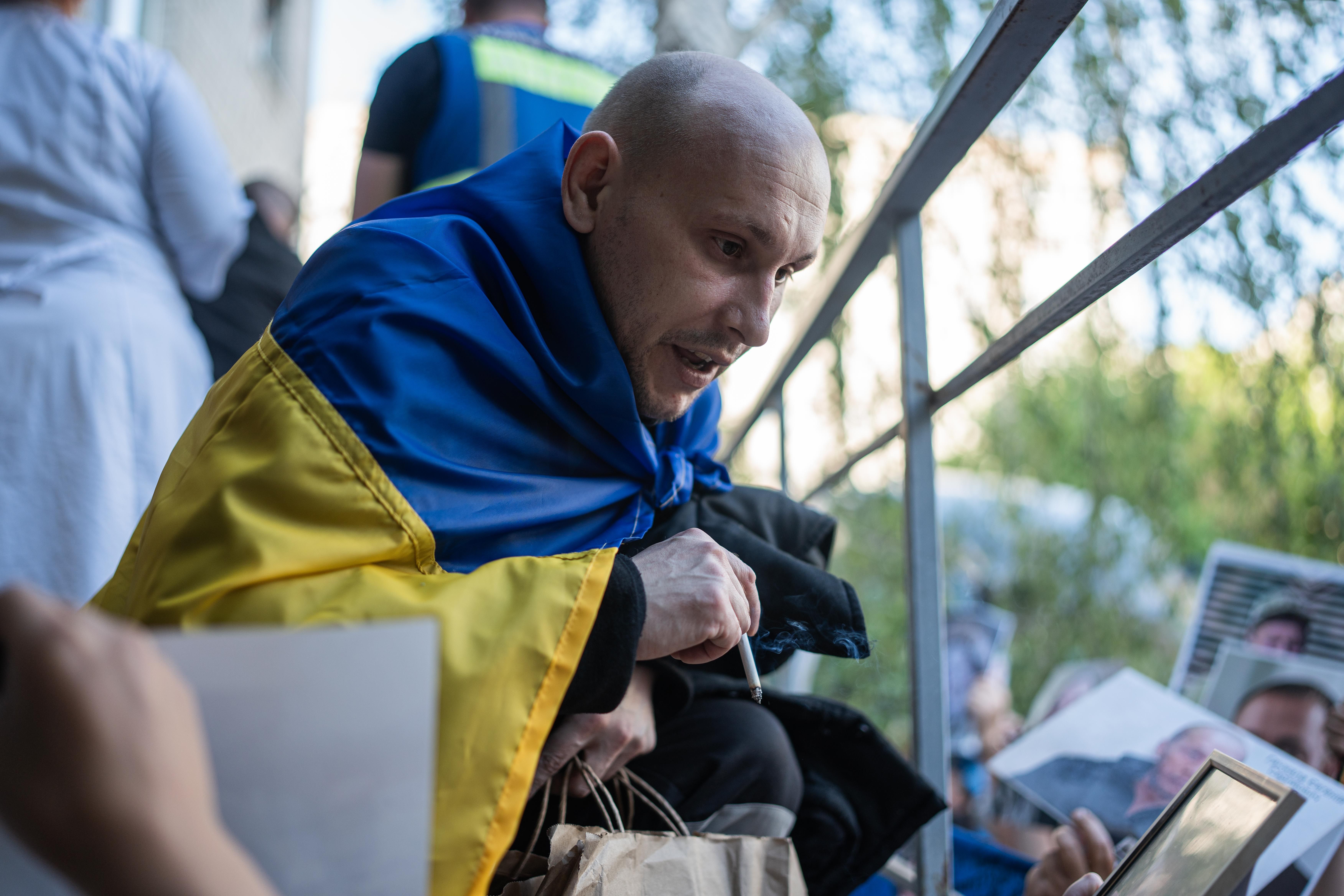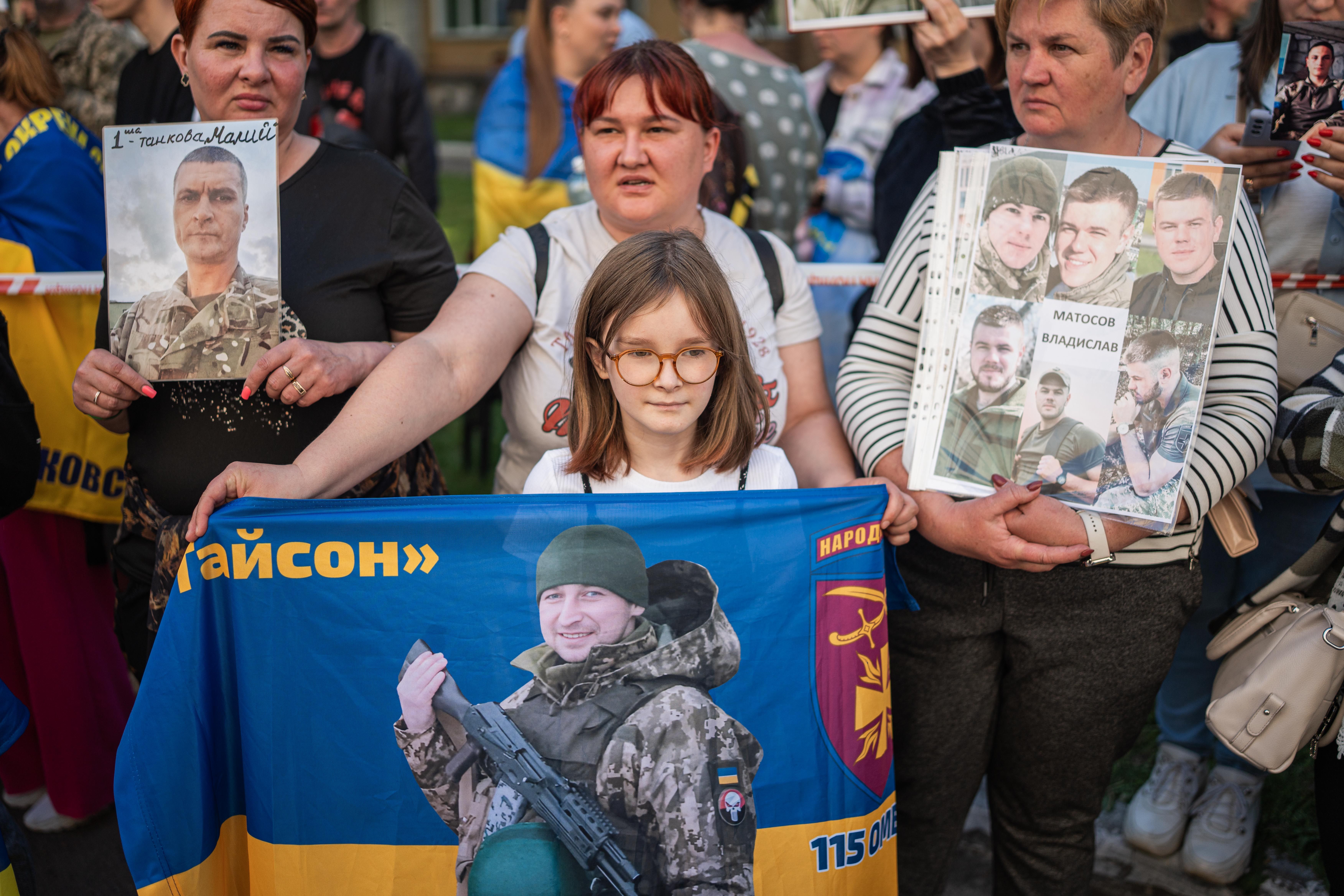 Рідні показують воїнам фото своїх близьких, намагаючись дізнатися про їхню долю / Фото Валентини Поліщук для 24 Каналу