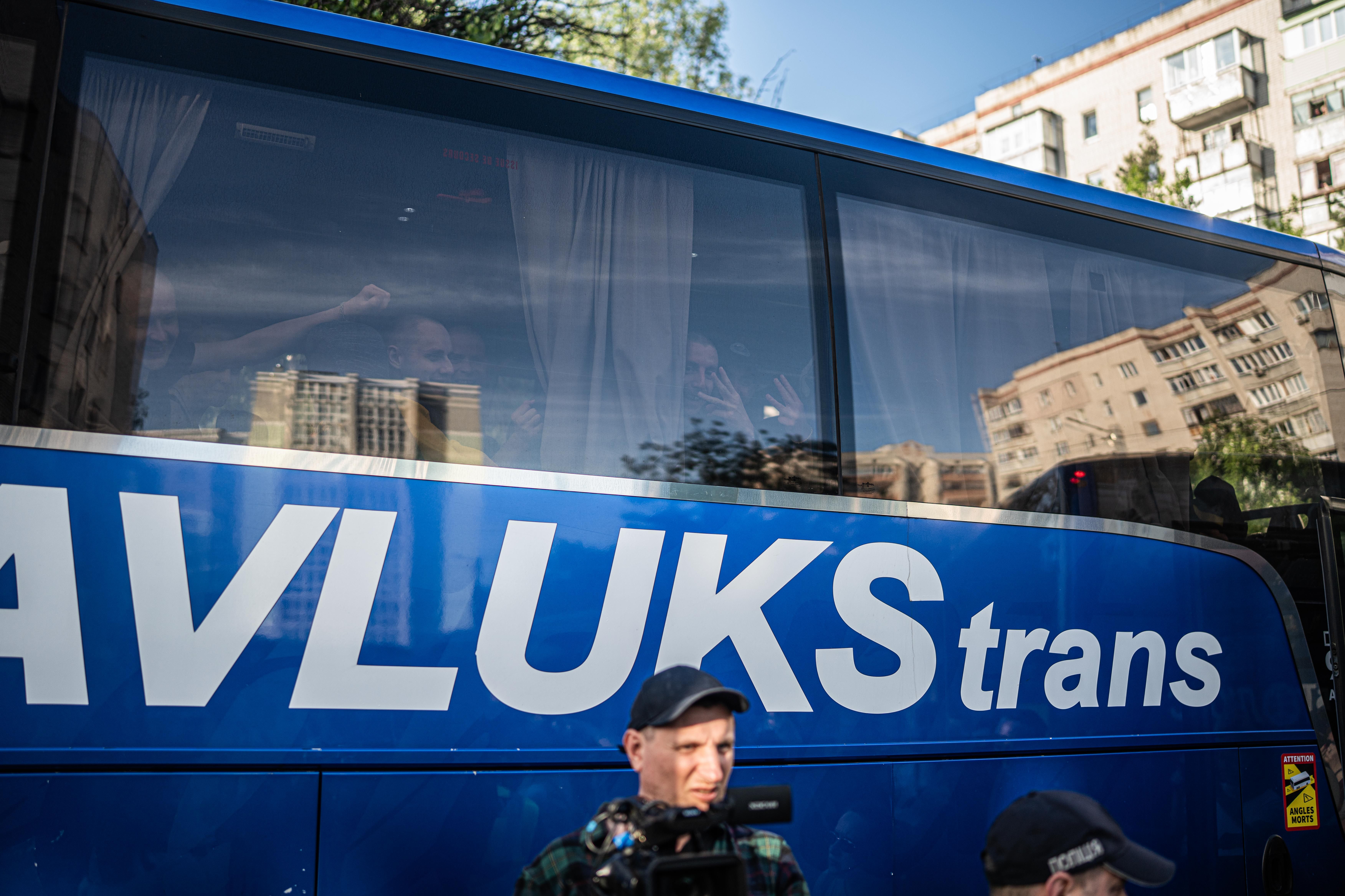 Автобус з українцями, які радіють поверненню додому / Фото Валентини Поліщук для 24 Каналу