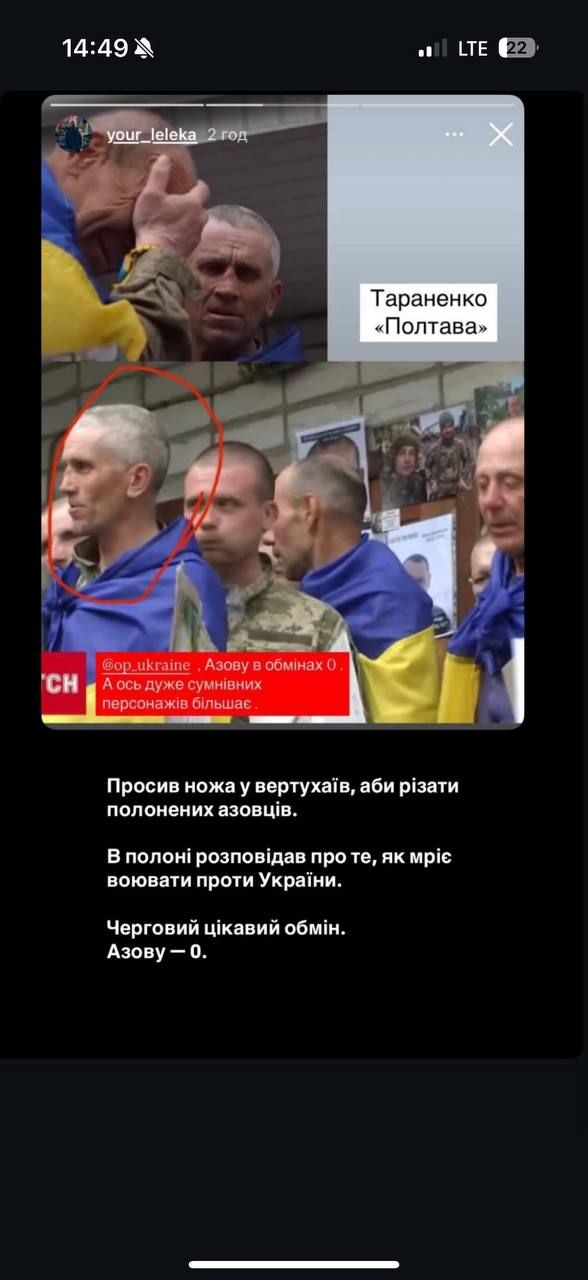 - Україна провела обмін полоненими з Росією у форматі "1000 на 1000", але не вдалося повернути бійців "Азову". Денис Прокопенко заявив, що водночас повернули зрадника, який просив ножа у вертухаїв, щоб знущатися з наших бійців.