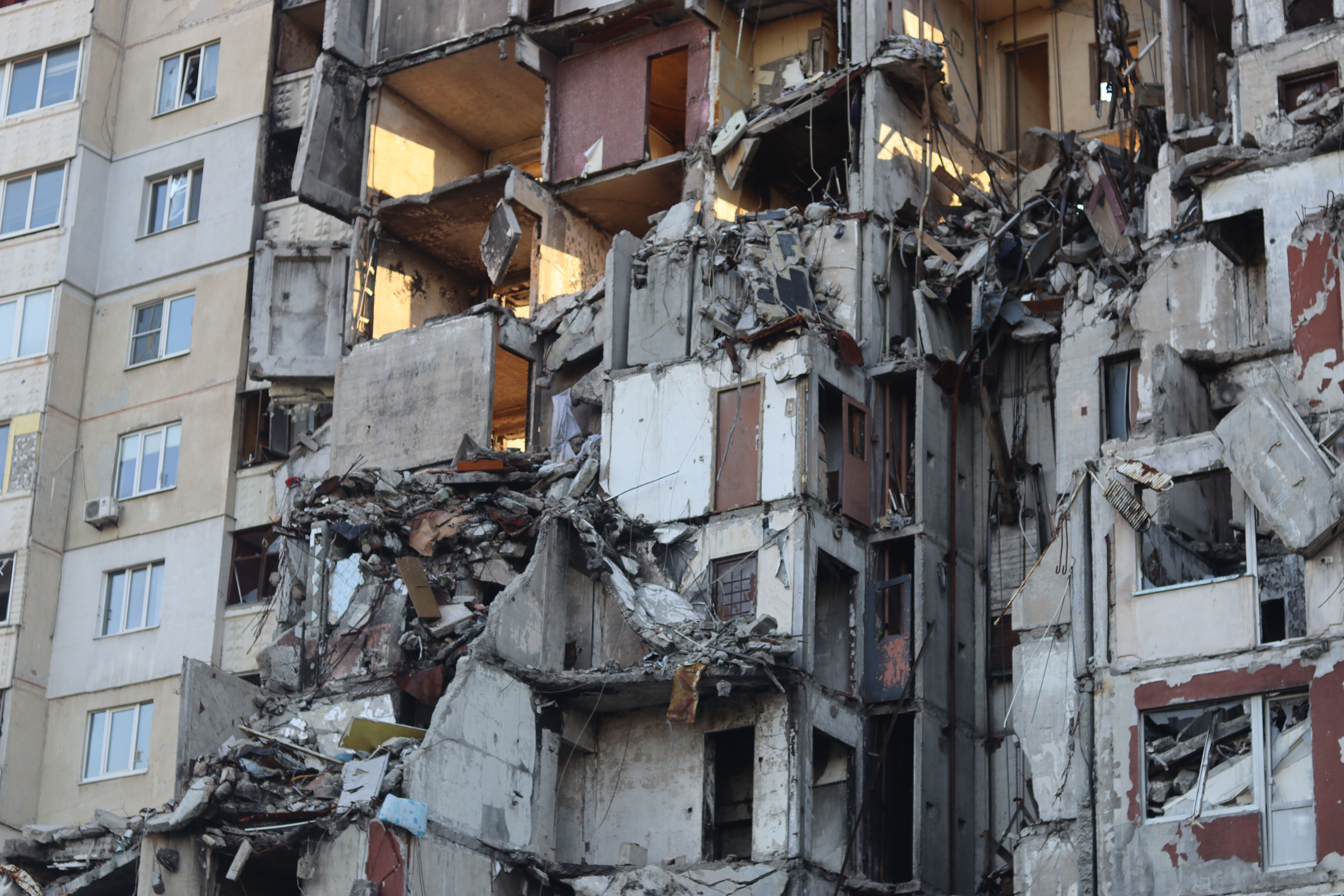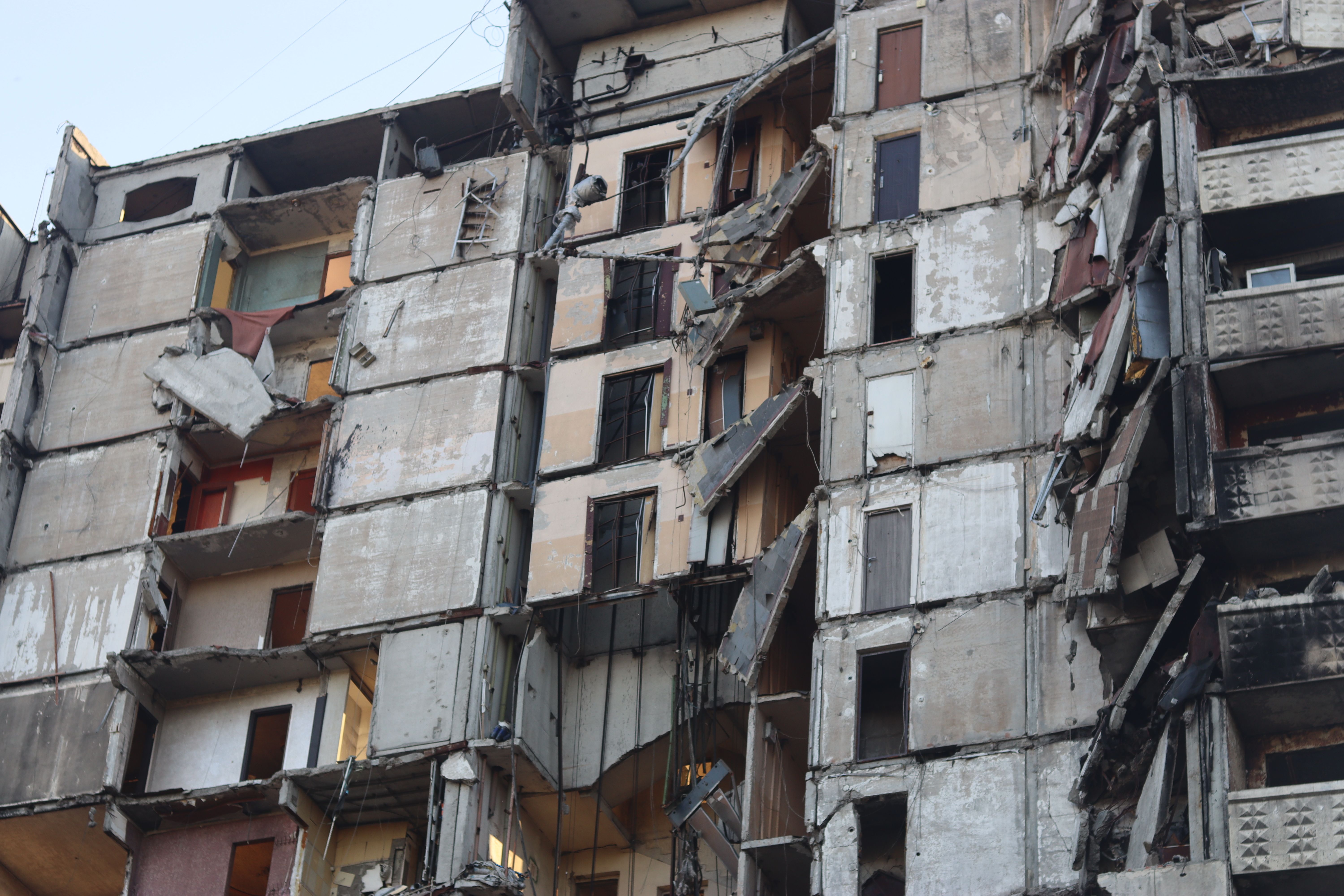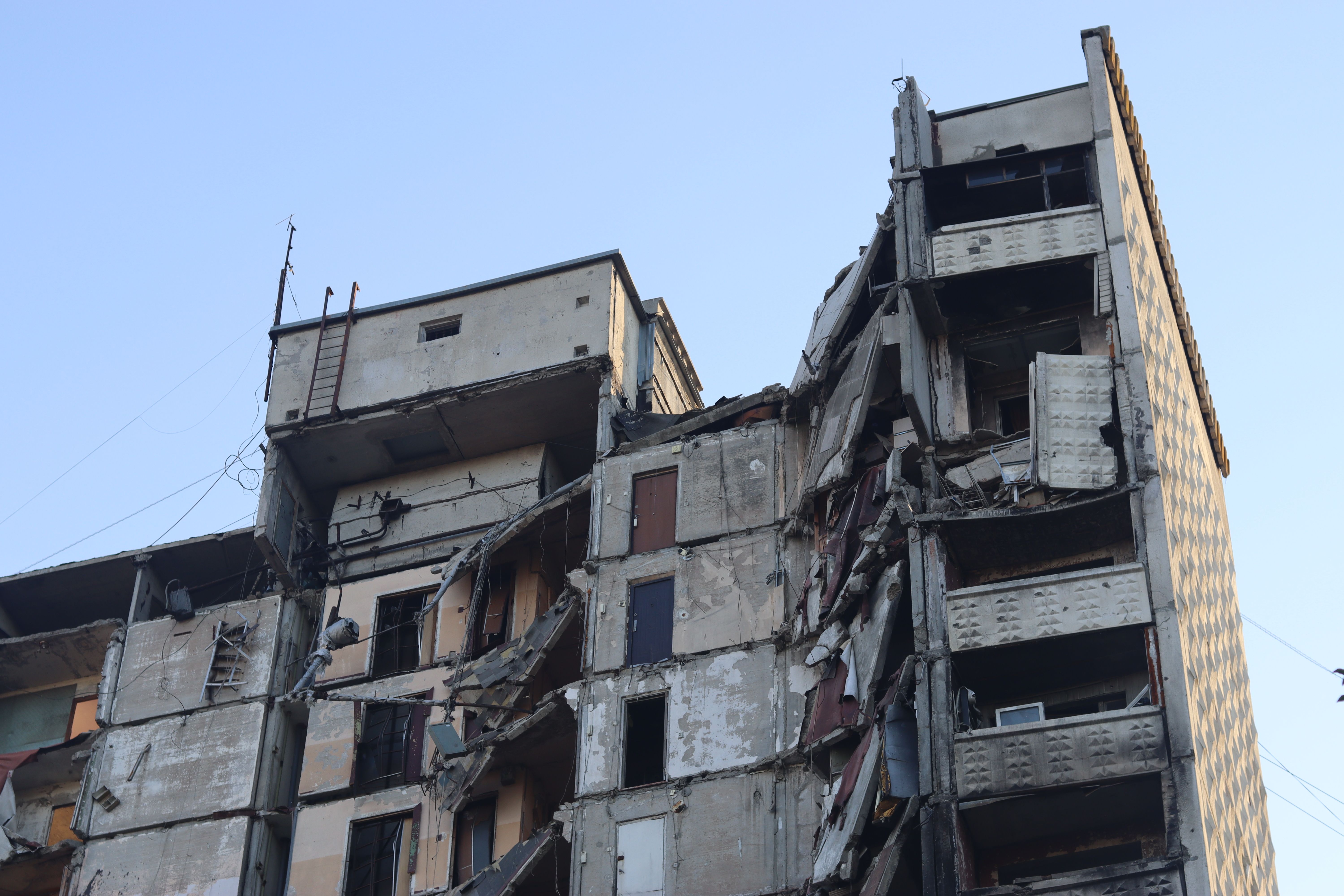 У нього влучила бомба. Вона пробила дах, застрягла між 8 і 9 поверхом і не розірвалась. Якби вона тоді вибухнула, то нас би просто знесло,