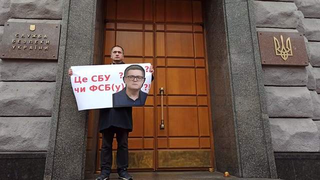 Протести під СБУ через обшуки в Музеї Революції Гідності: дивіться фото (Укрінформ і "Цензор.НЕТ")