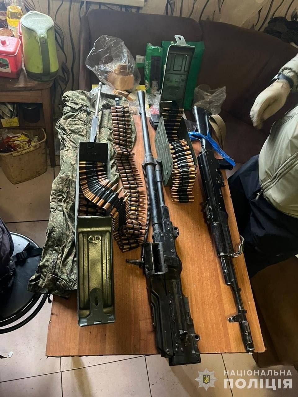 Повідомляється, що слідчі дії та процес вилучення зброї та боєприпасів триває.