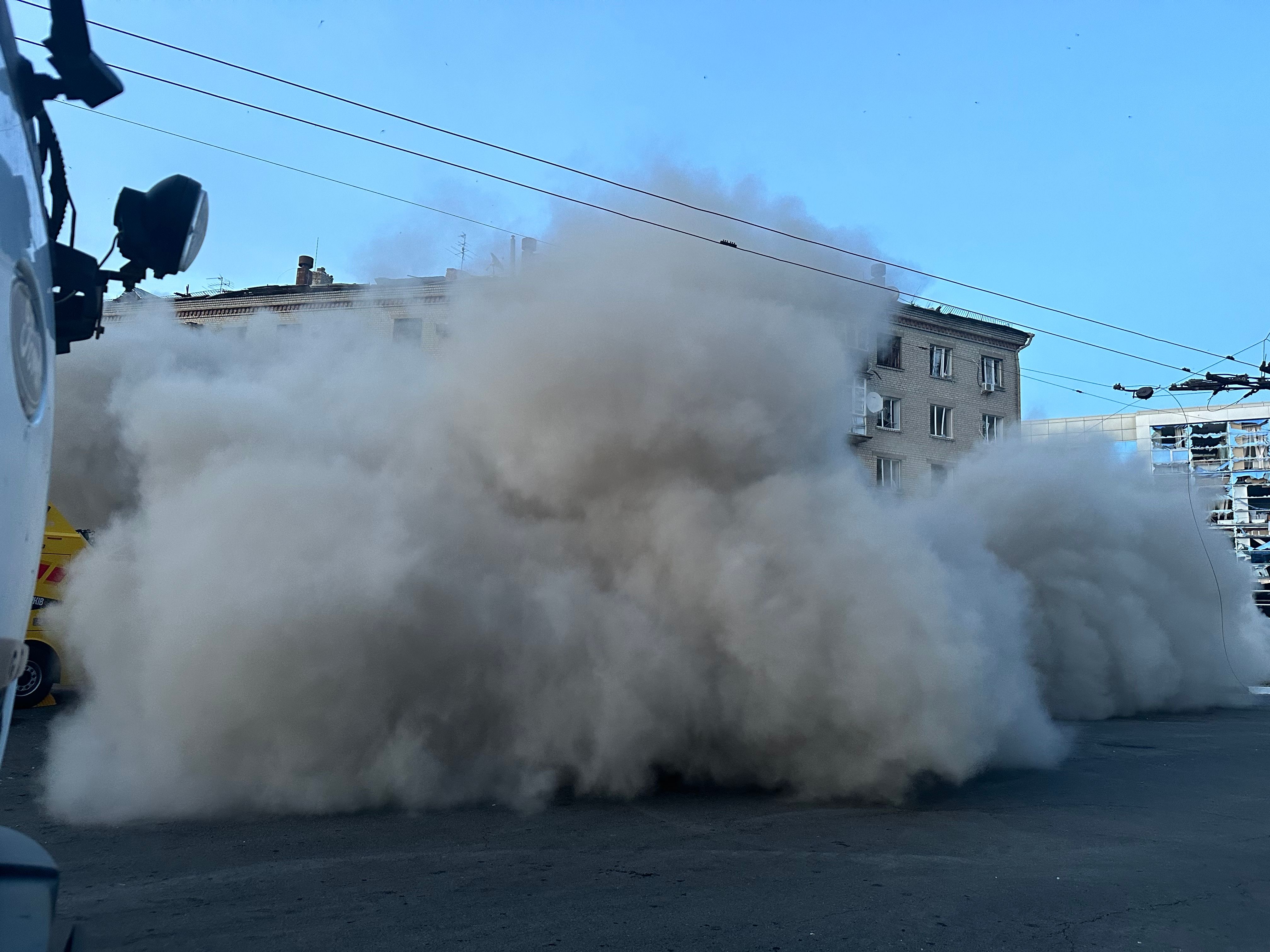 Відповідні кадри змогла задокументувати кореспондентка 24 Каналу Анна Черненко. Відомо, що важких наслідків зміг завдати російський снаряд УМПБ Д-30.
