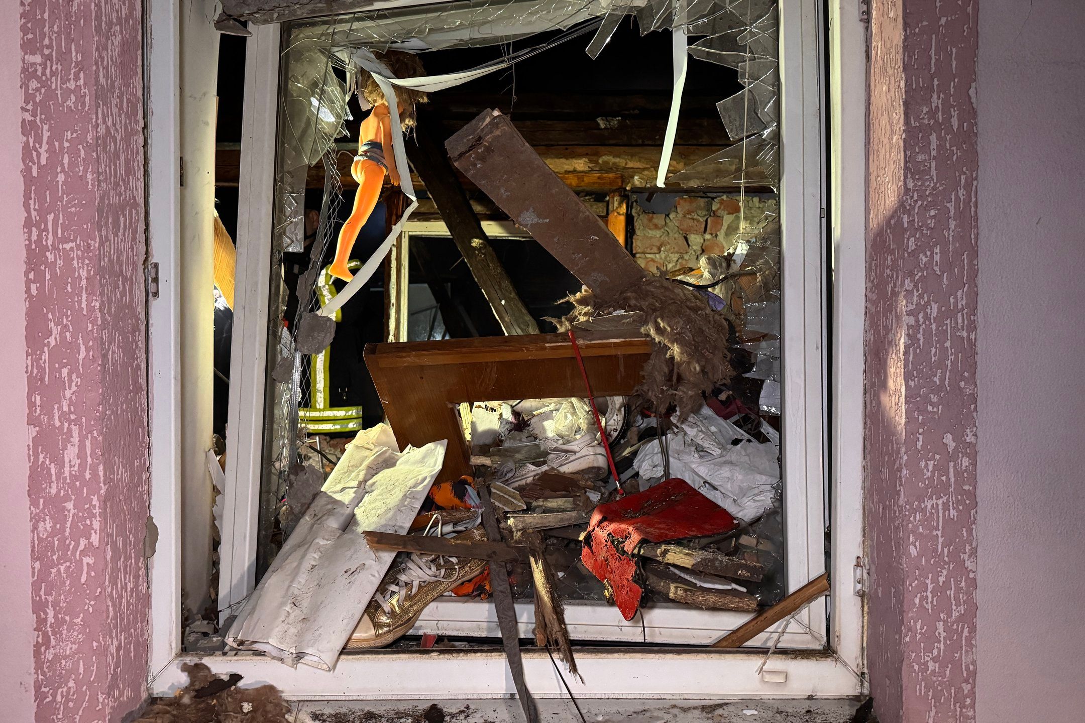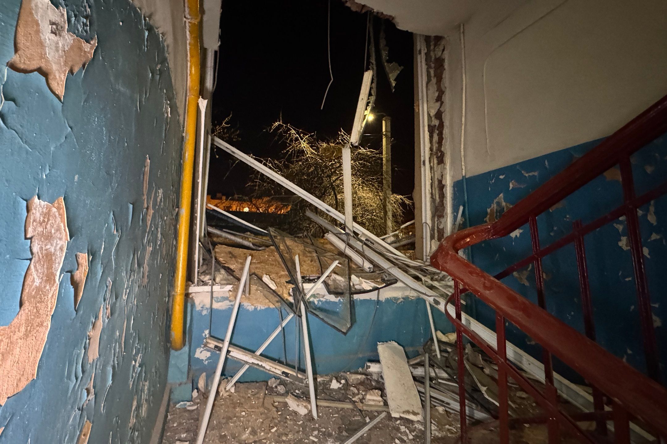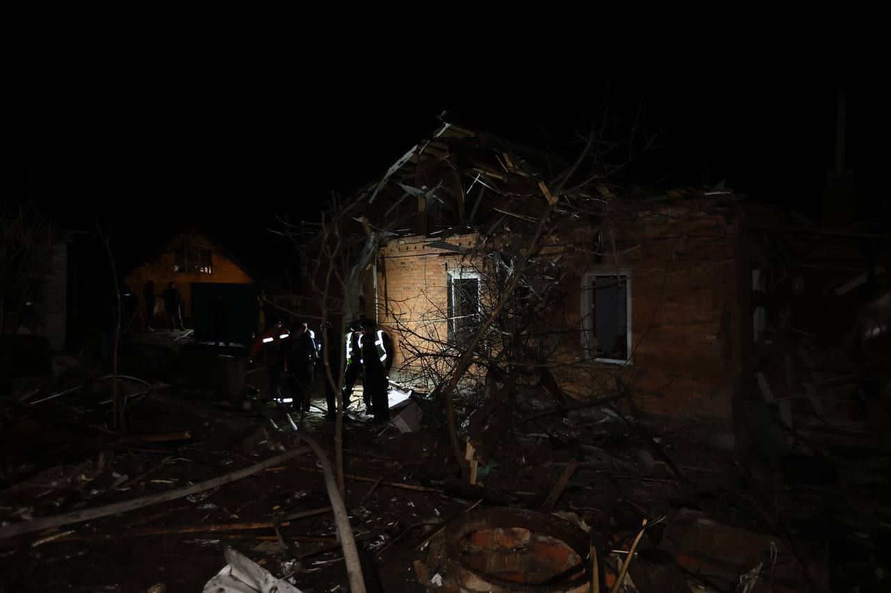 Одне з влучань сталося безпосередньо у приватний житловий будинок, який повністю зруйновано. Сталася пожежа на площі 100 метрів квадратних. З-під завалів рятувальники деблокували постраждалого чоловіка та тіло загиблої жінки. Триває ліквідація пожежі та розбір завалів,