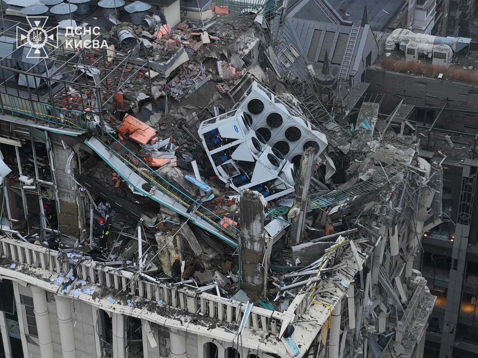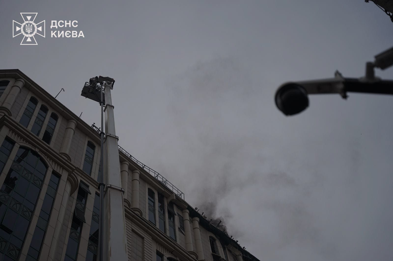 В ДСНС повідомили, що внаслідок падіння уламків сталось загоряння на 13-му поверсі будівлі. Також стався обвал конструкцій, а вхід на 15 поверх зараз завалено. За словами рятувальників, пожежу вдалося локалізувати на площі 60 квадратних метрів.