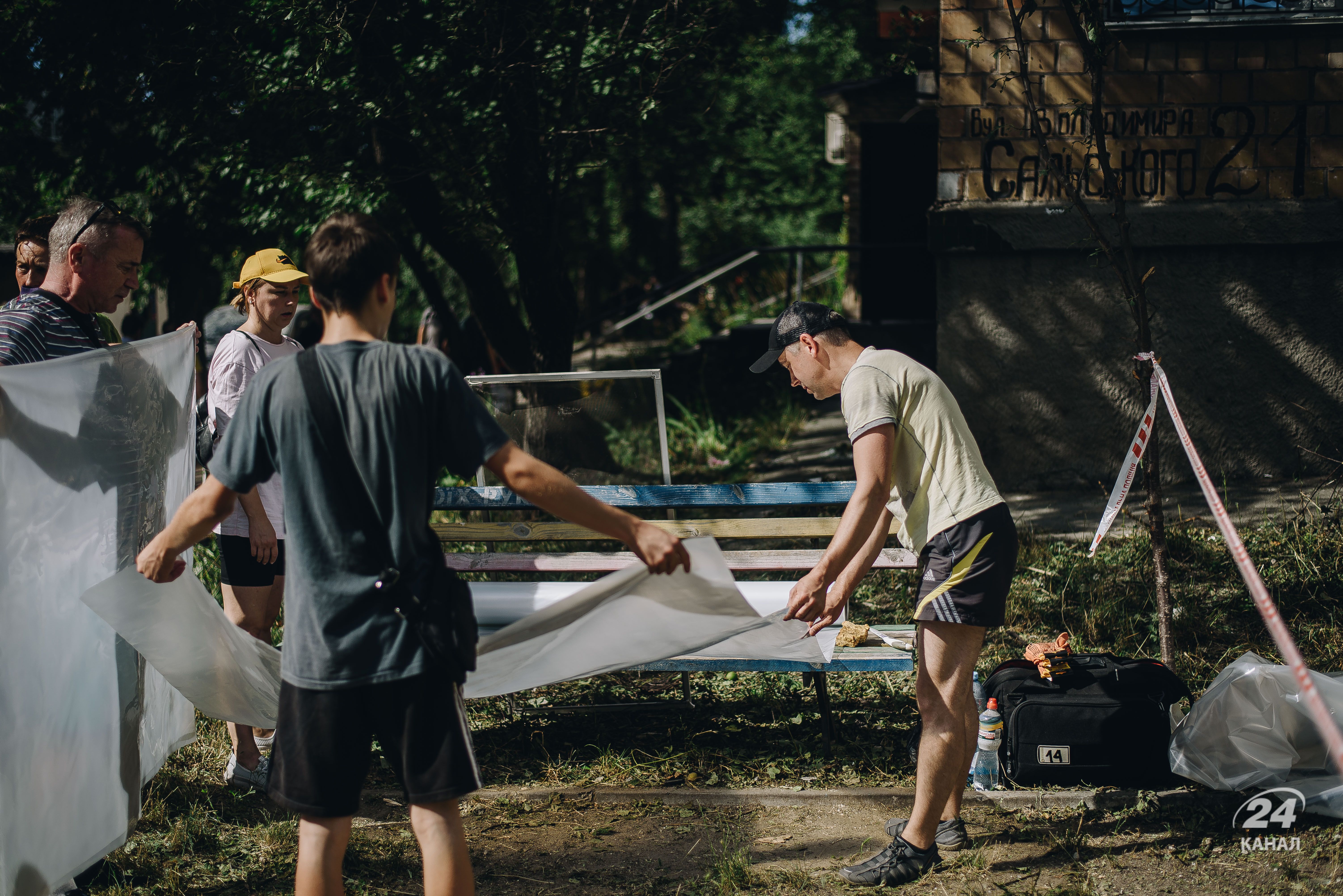 Кияни біля обстріляного будинку на Сирці 8 липня / Фото Валентини Поліщук