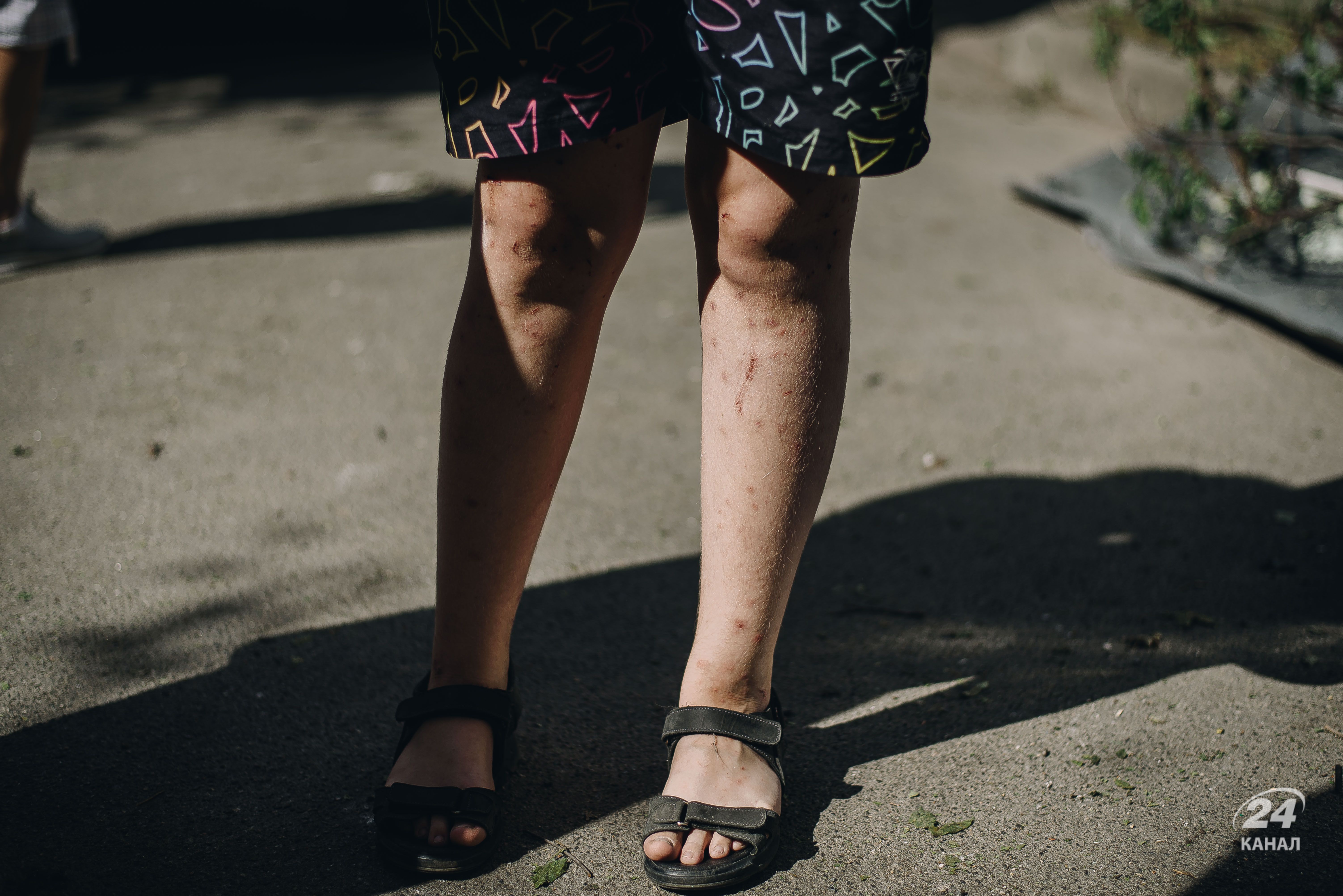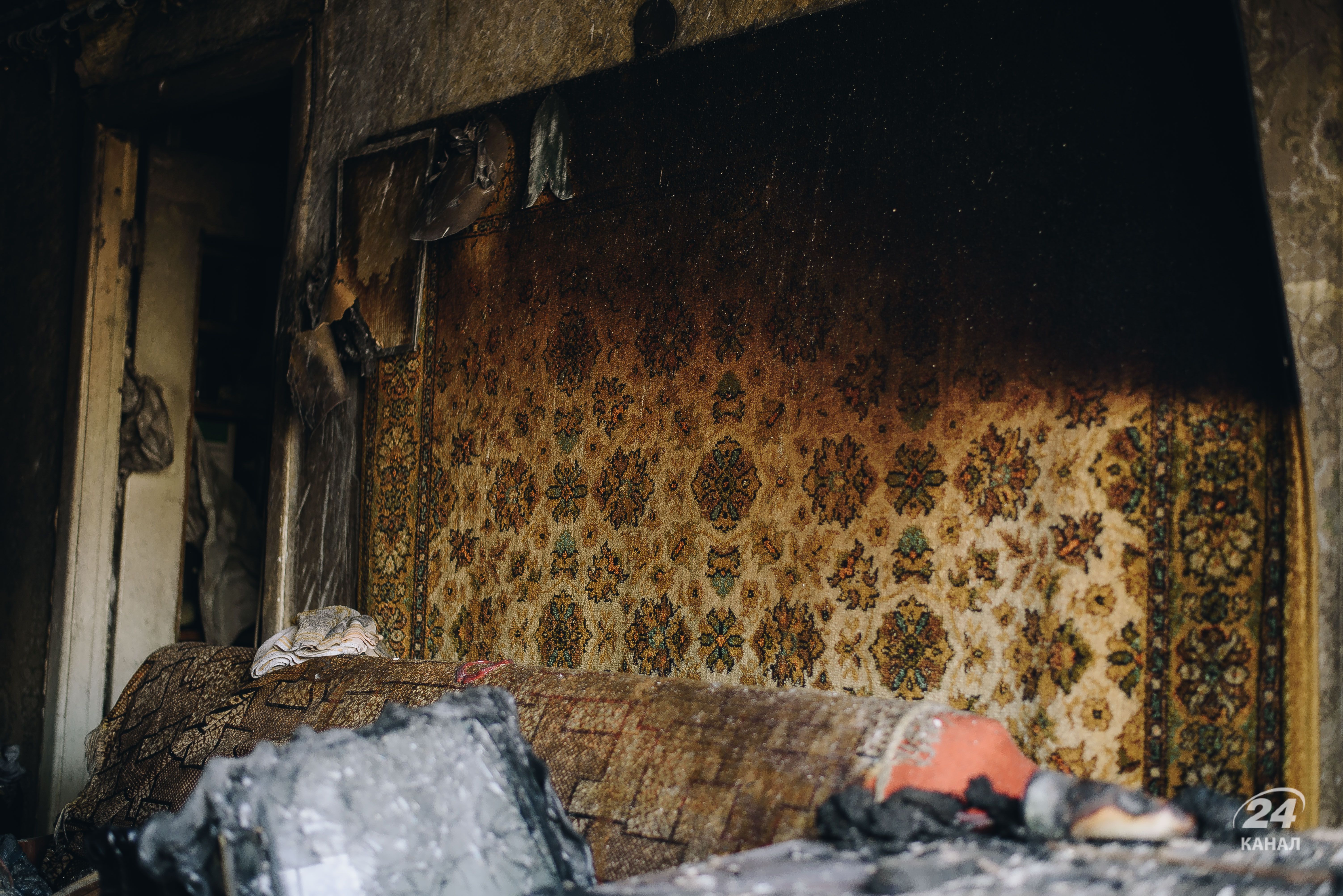 Ноги людей посікло уламками, в одній із квартир спалило килим. Добре видно згорілі оселі.