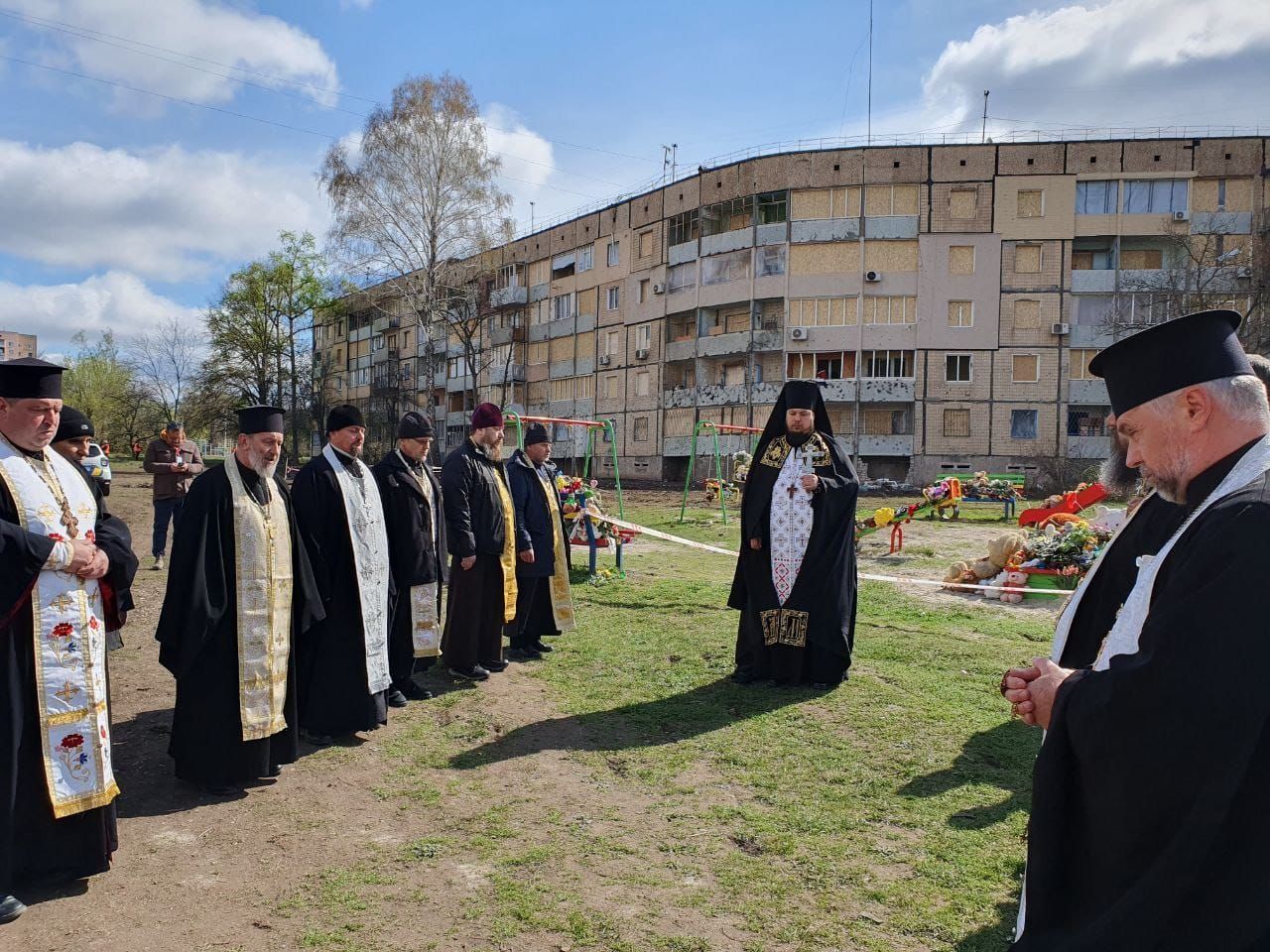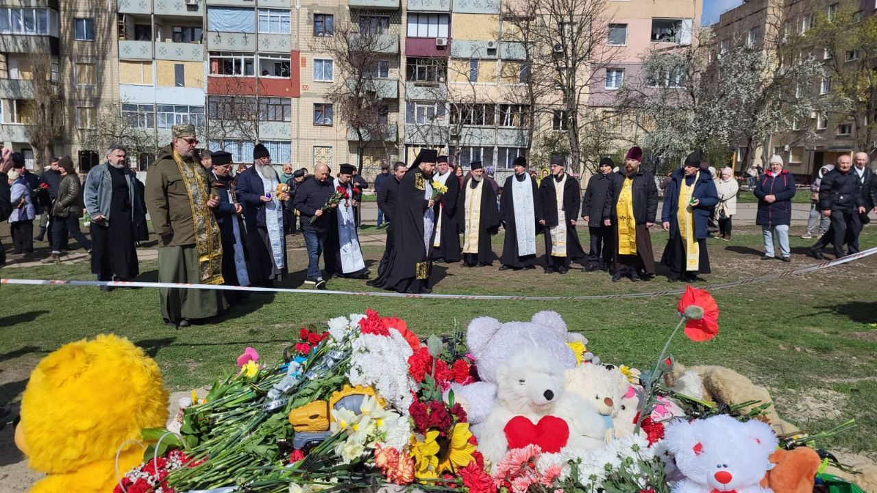 "Ми зібралися тут зі священниками, аби ще раз і ще раз нагадати про злочини росіян, які вони творять на нашій землі. Ми будемо молитися за усіх загиблих, в першу чергу – за нашими діточками, бо чужих дітей немає, всі вони діти України... У мене четверо дітей, я не уявляю, щоб мою дитину забрала війна. Для мене особисто це жах і жаль", – сказав протоієрей, благочинний Криворізького району ПЦУ Максим Крилач Суспільному.