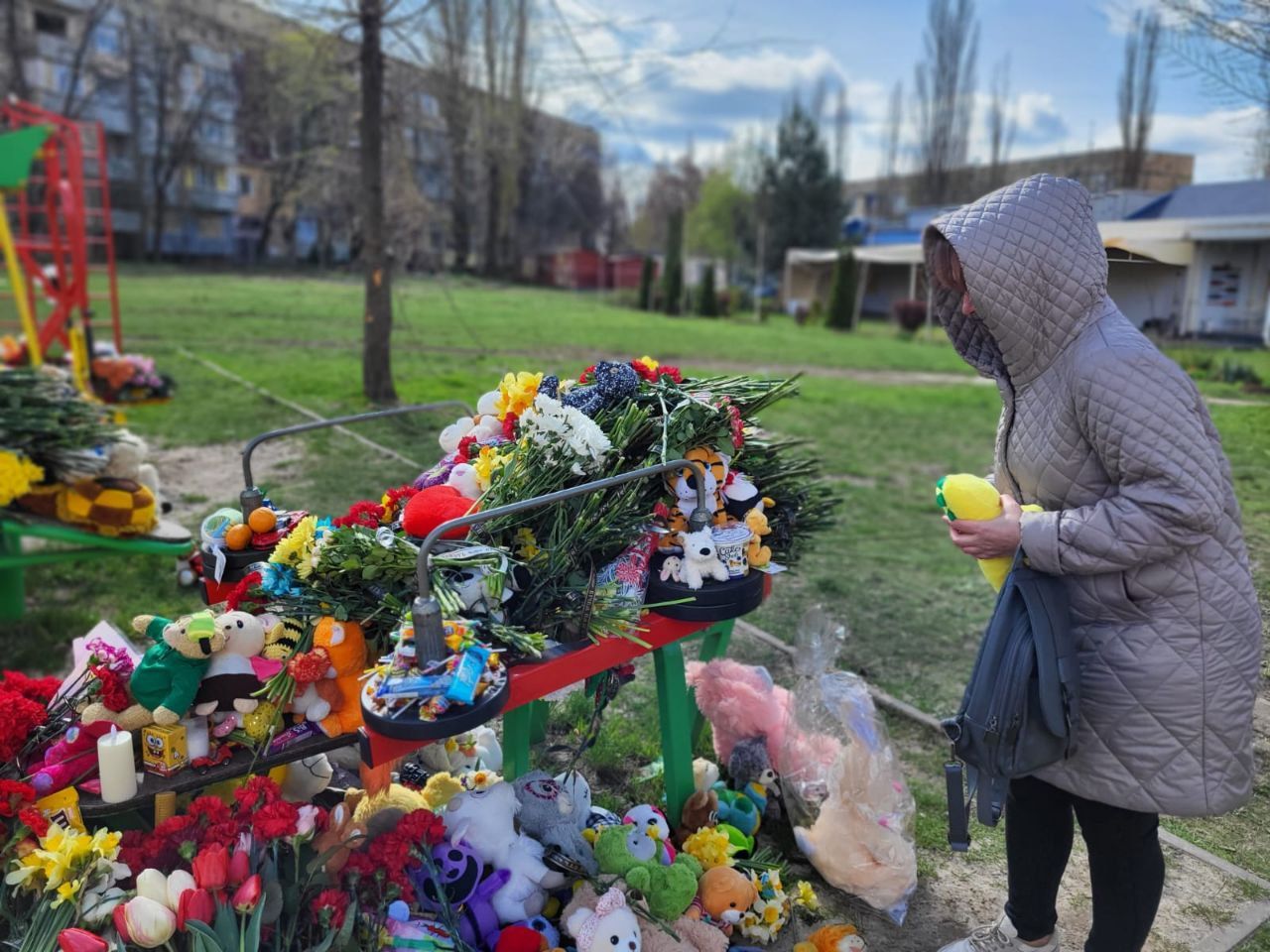 "Я працюю з дітьми, я вчителька... Дуже боляче, не знаю, як цей біль висловити. Хотілося відвідати це місце і якось помолитися за тих дітей, які вже ніколи й нічого не пізнають у цьому житті. Та й за дорослих теж. Дуже шкода батьків, я не знаю, як вони будуть із цим жити...", – сказала вона.