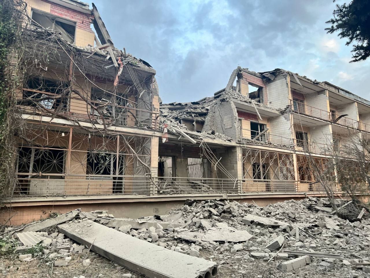 Понівечені аптека і магазини. Такі дані на зараз. Будівля готелю зруйнована з 1 по 3 поверхи. Терор цивільних не припиняється,