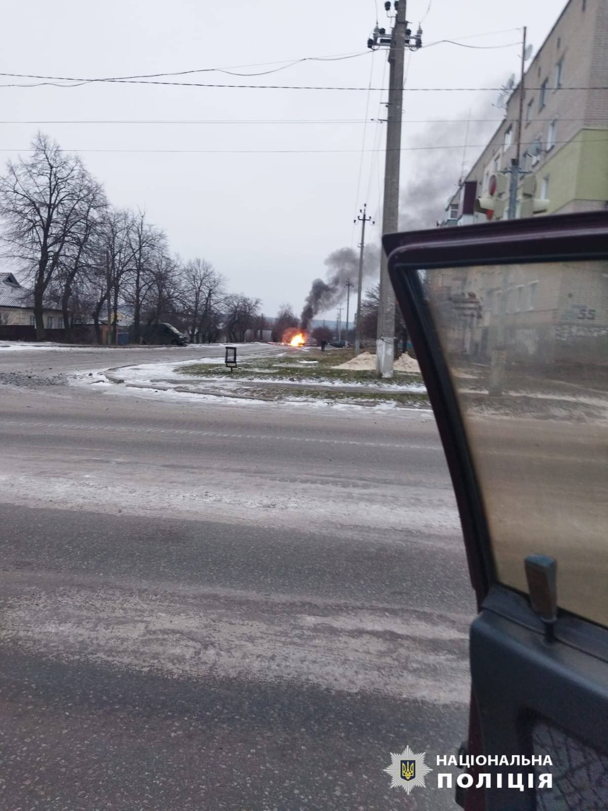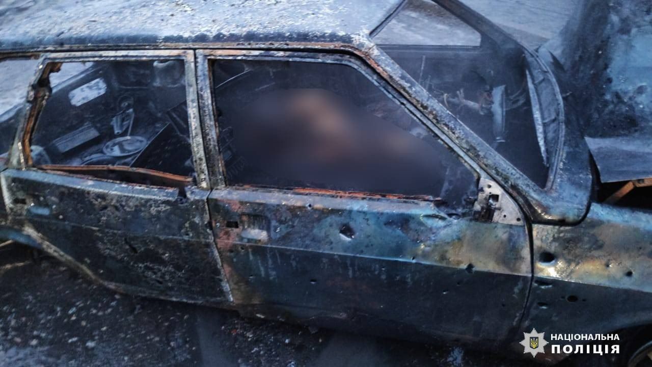 Внаслідок удару спалахнув легковий автомобіль. Водій загинув на місці. Наразі його особу встановлюють.