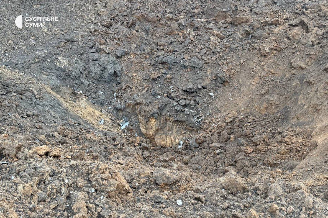 На опублікованих кадрах видно величезну вирву від російської ракети, а також вибиті вікна у будинках.