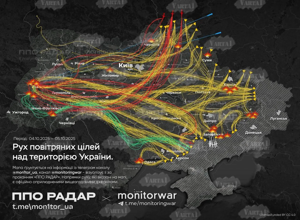 У ніч проти 5 жовтня Росія підняла у повітря стратегічну авіацію та вивела в море ракетоносії. Ворог здійснив запуск ракет, а також залучив безпілотники для терору українців.