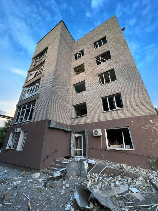 Будівля частково зруйнована. Крім цього, від ударної хвилі та уламків вікна вилетіли й в сусідніх лікувальних відділеннях, пошкоджена автомобільна медична техніка.
