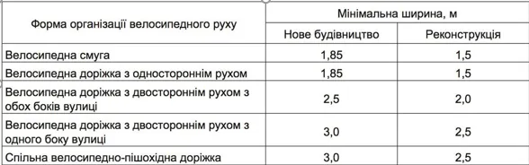 Определяется минимальная ширина велосипедных полос и дорожек при новом строительстве или реконструкции: