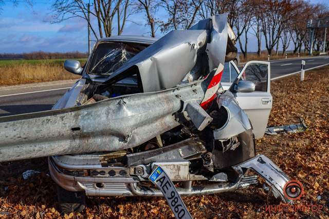 За попередньою інформацією, автомобіль рухався у бік Кривого Рогу. Водій не впорався з керуванням та протаранив огорожу.