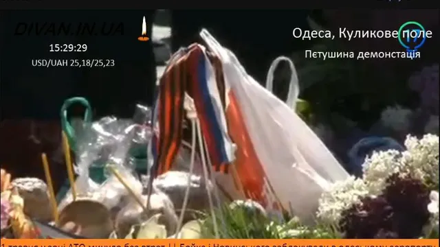Присутні заспівали "Идет война народная, священная война", "Катюшу", а після цього почали скандувати: "Вон из Одессы бандеровские бесы", "Фашизм не пройдет" і "Не забудем не простим".
