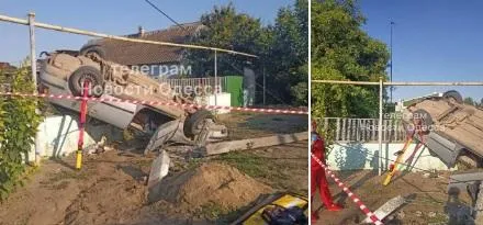 Під Одесою авто перекинулося і повисло на паркані / Телеграм "Новости Одесса"