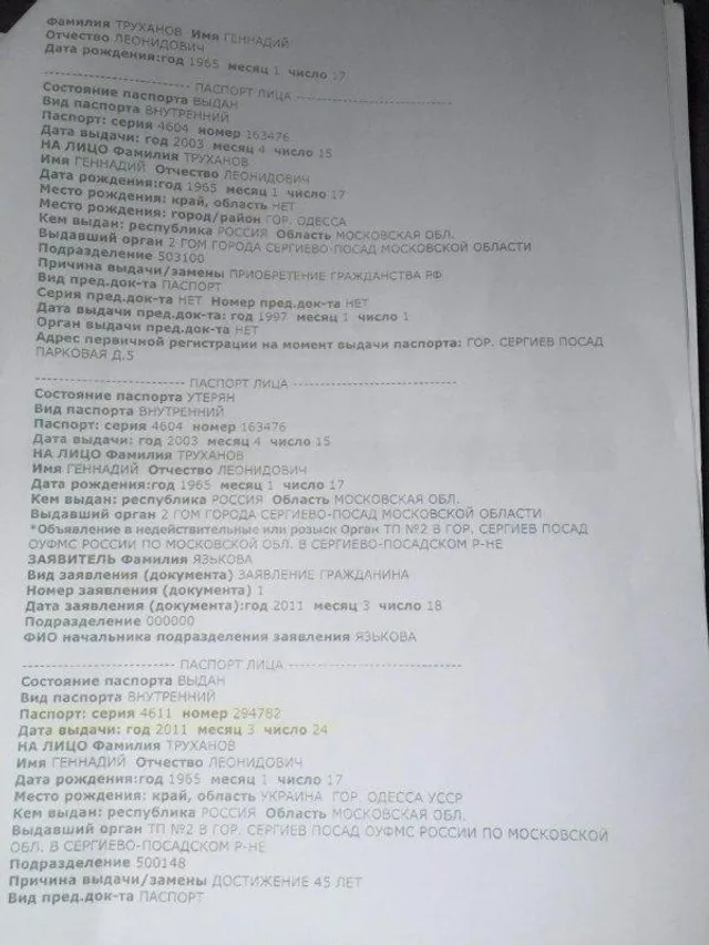"У мера Одеси, виходячи з документів, є навіть 2 російських паспорти, один виданий в Московській області, а інший — в Дагестані. Так що після Донецька, кадировці цілком можливо "приїдуть звільняти" Одесу. Труханов нібито втрачав паспорт, це послужило причиною отримання нового", — написав політик у блозі на "Українській правді".
