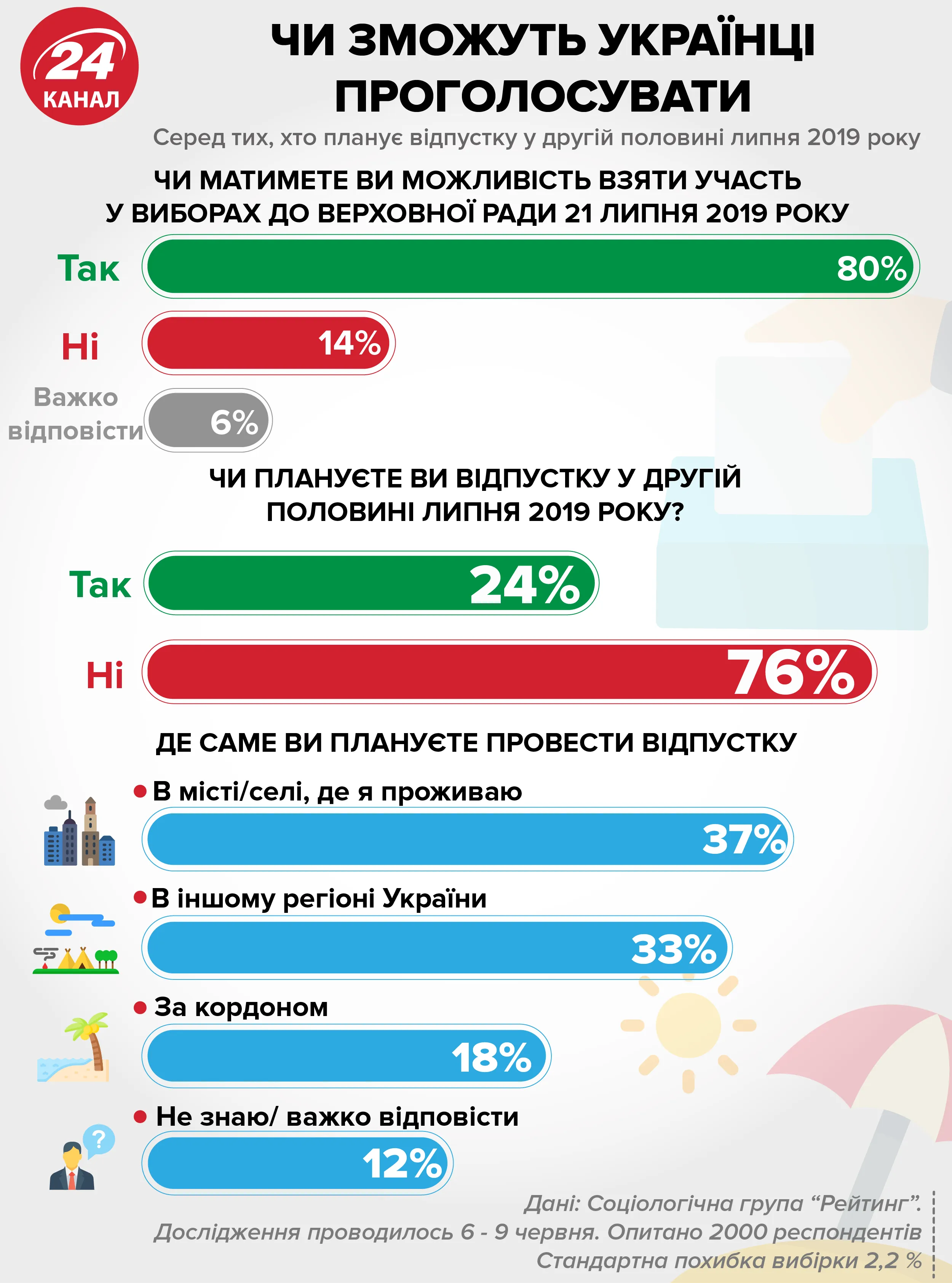Відпустки на другу половину липня планують 24% українців, а 76% – не планують у цей час відпочивати